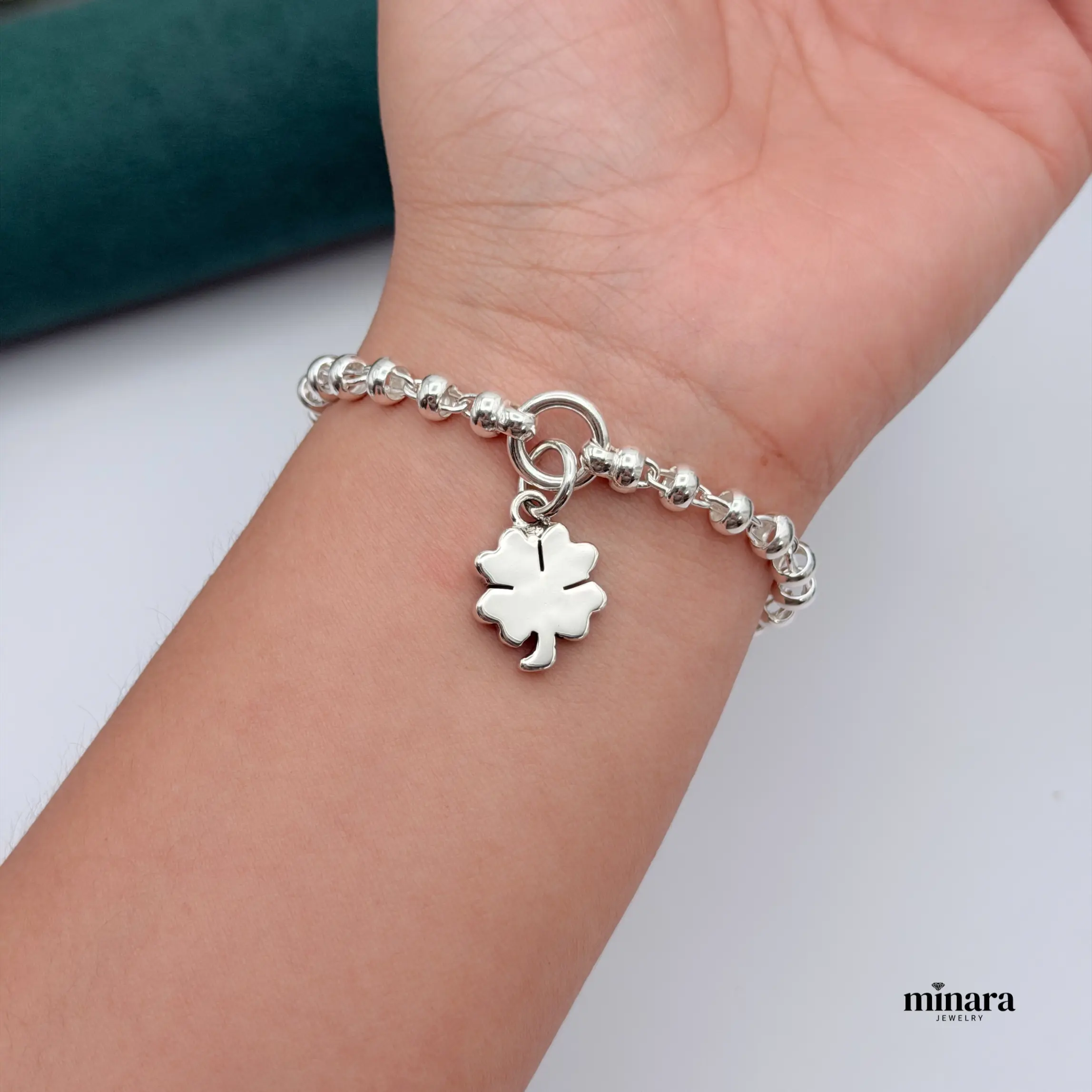 MINARA 950 Silver Trebol Bracelet - Pulsera con donas y trebol colgante