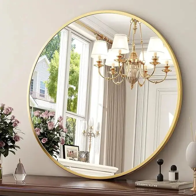 With its sleek circular silhouette and refined metal frame, this mirror blends seamlessly into entryways, bathrooms, and living spaces, creating a calm, elevated atmosphere.