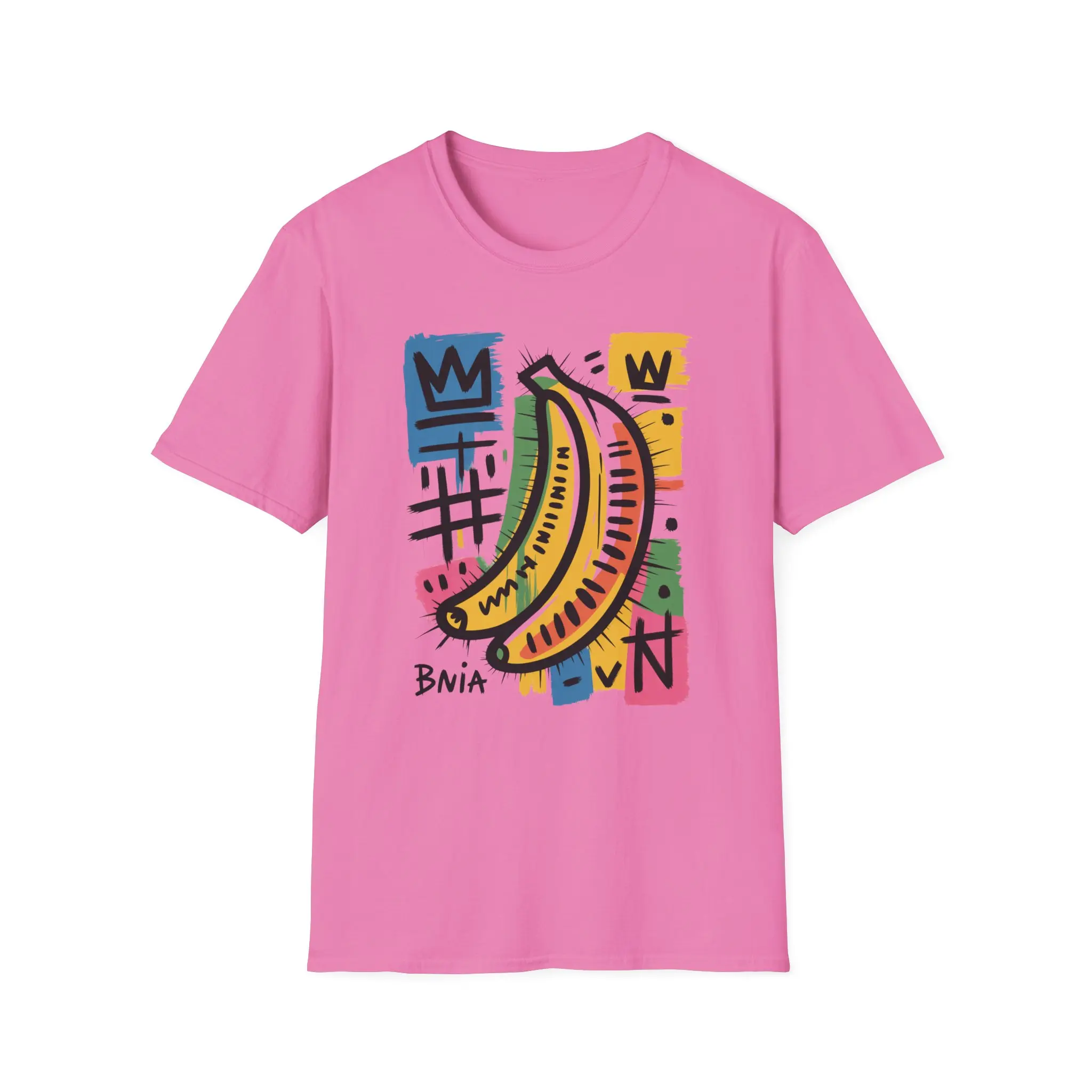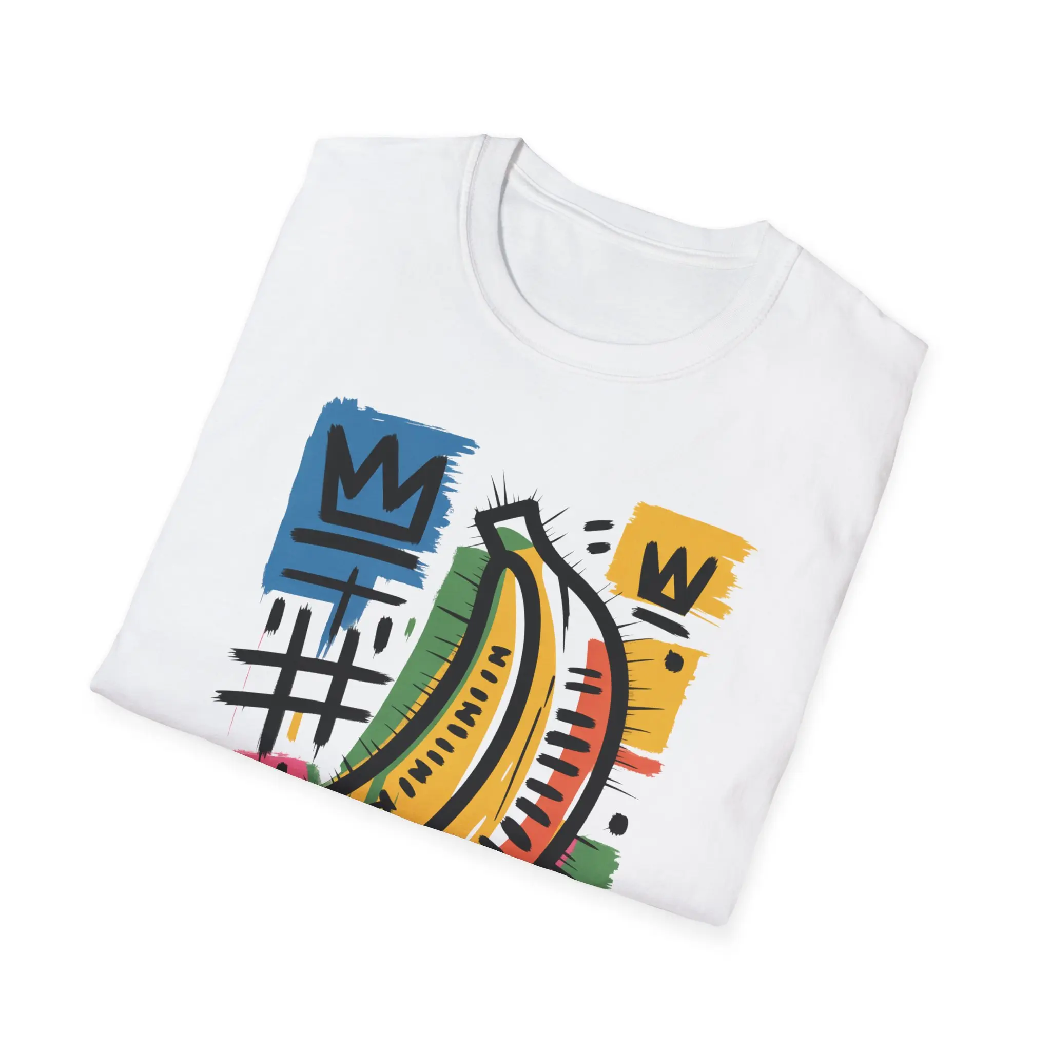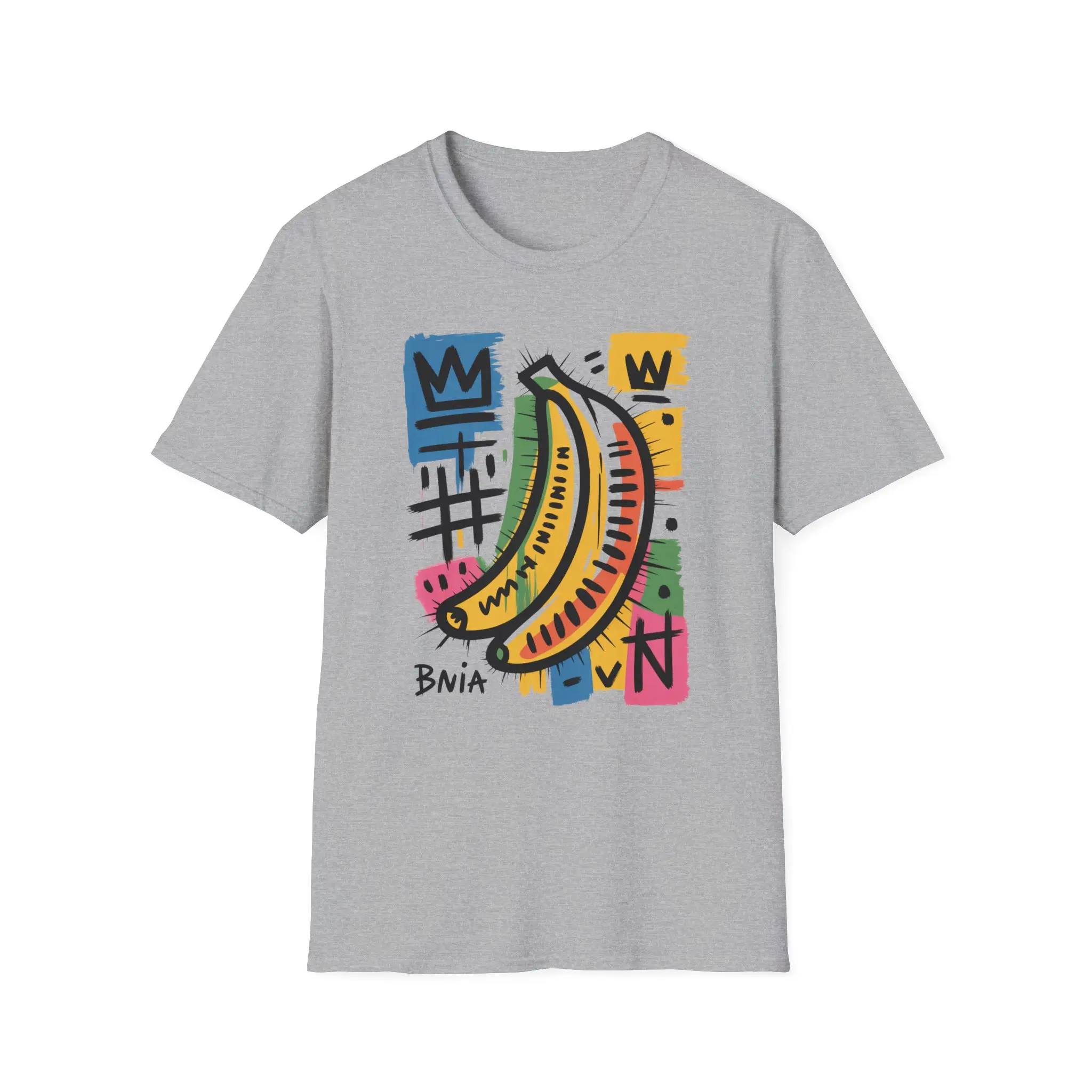 Bright, playful, and unapologetically bold — this lightweight cotton tee brings a splash of street-art energy to everyday wear. Two stylized bananas sit against colorful block marks and graffiti-like icons, creating a spontaneous, hand-drawn vibe that catches the eye without shouting. The soft ring-spun cotton drapes comfortably, while the clean crew neckline and classic fit keep the look easy and wearable. Wear it to stand out at low-key meetups, summer markets, or creative hangouts — it feels like a sketchbook come to life on your chest.