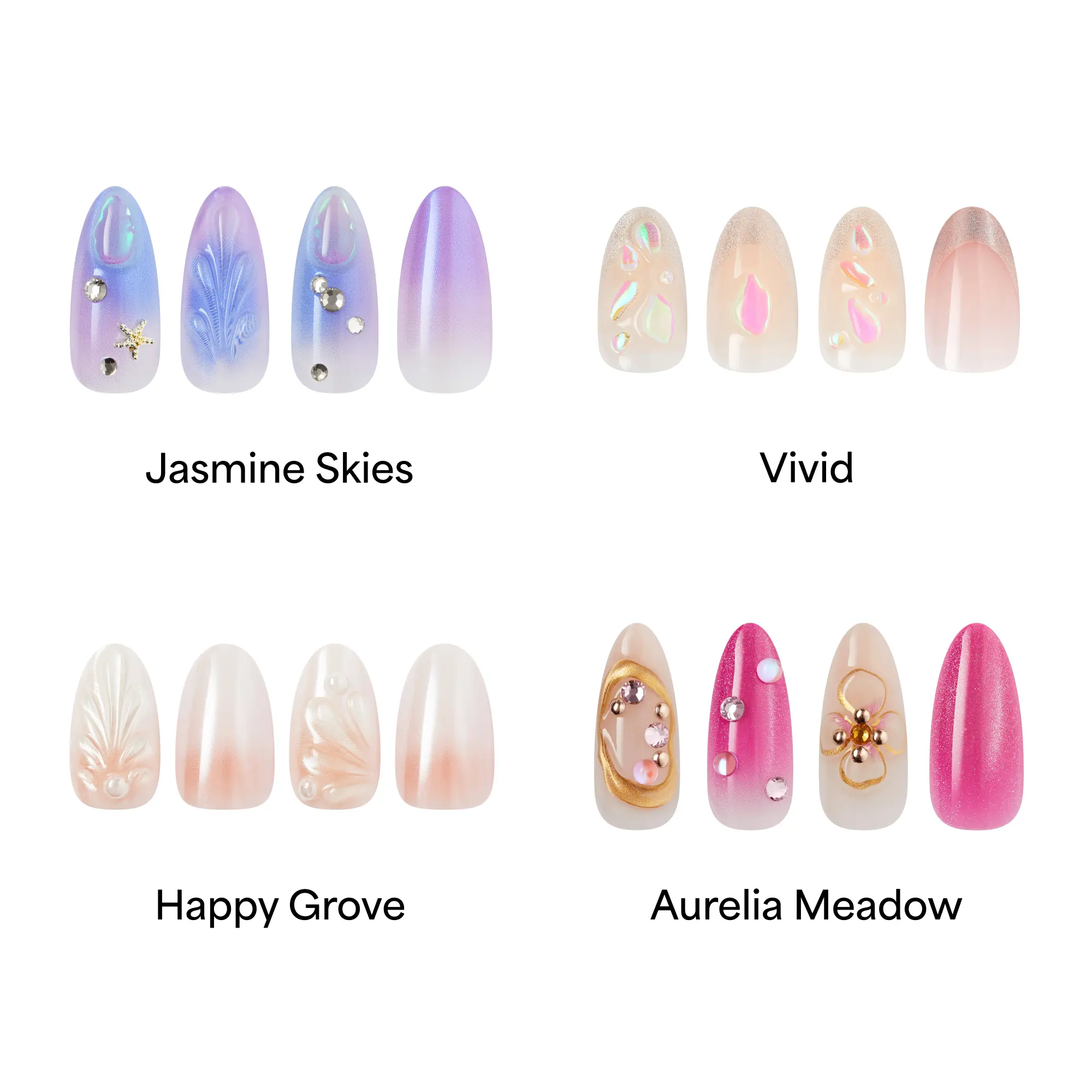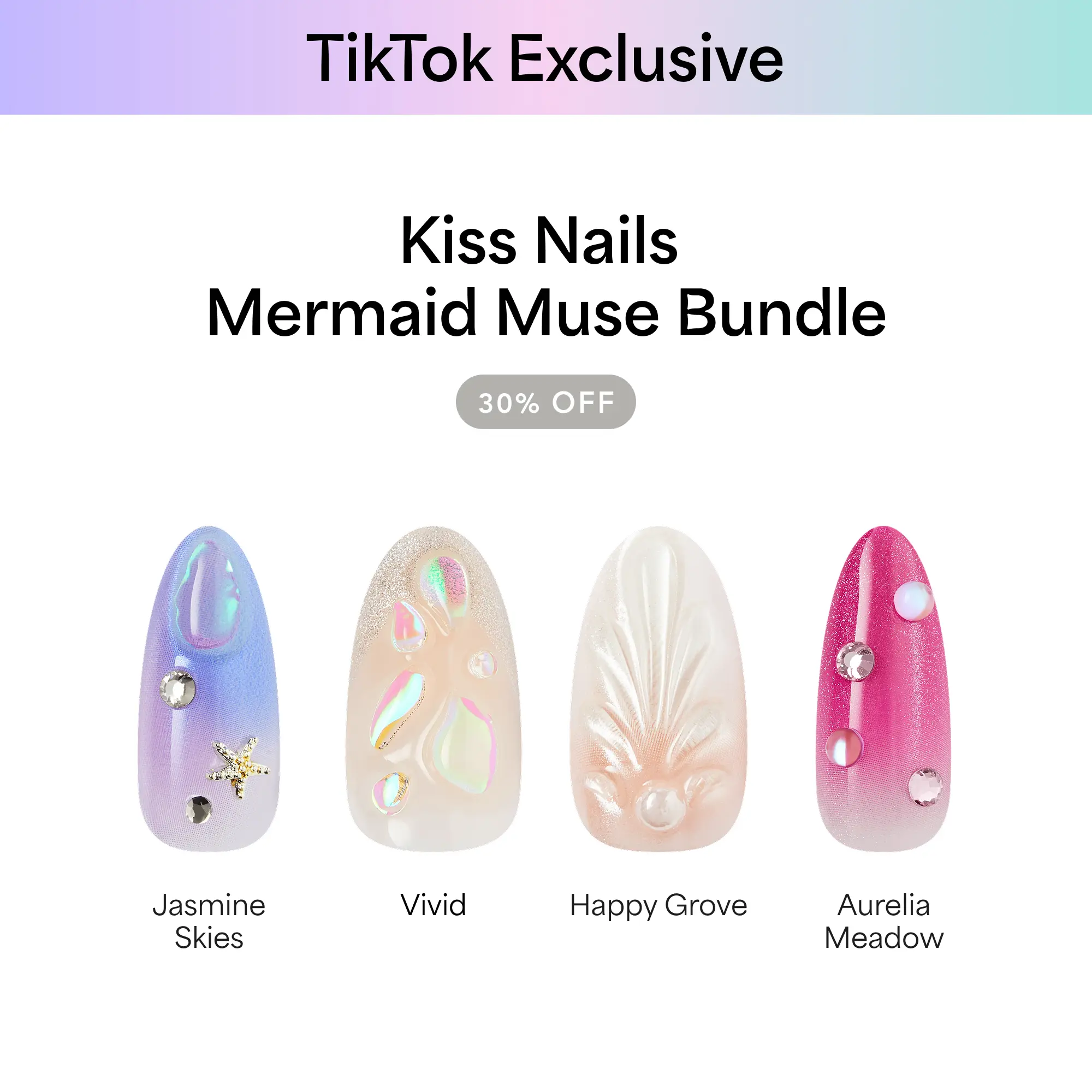 The Mermaid Muse Bundle channels a modern mermaid fantasy with a touch of royal glam. Featuring four statement styles with shimmering finishes, soft iridescence, and dimensional details, each set feels like a treasure pulled from beneath the waves.