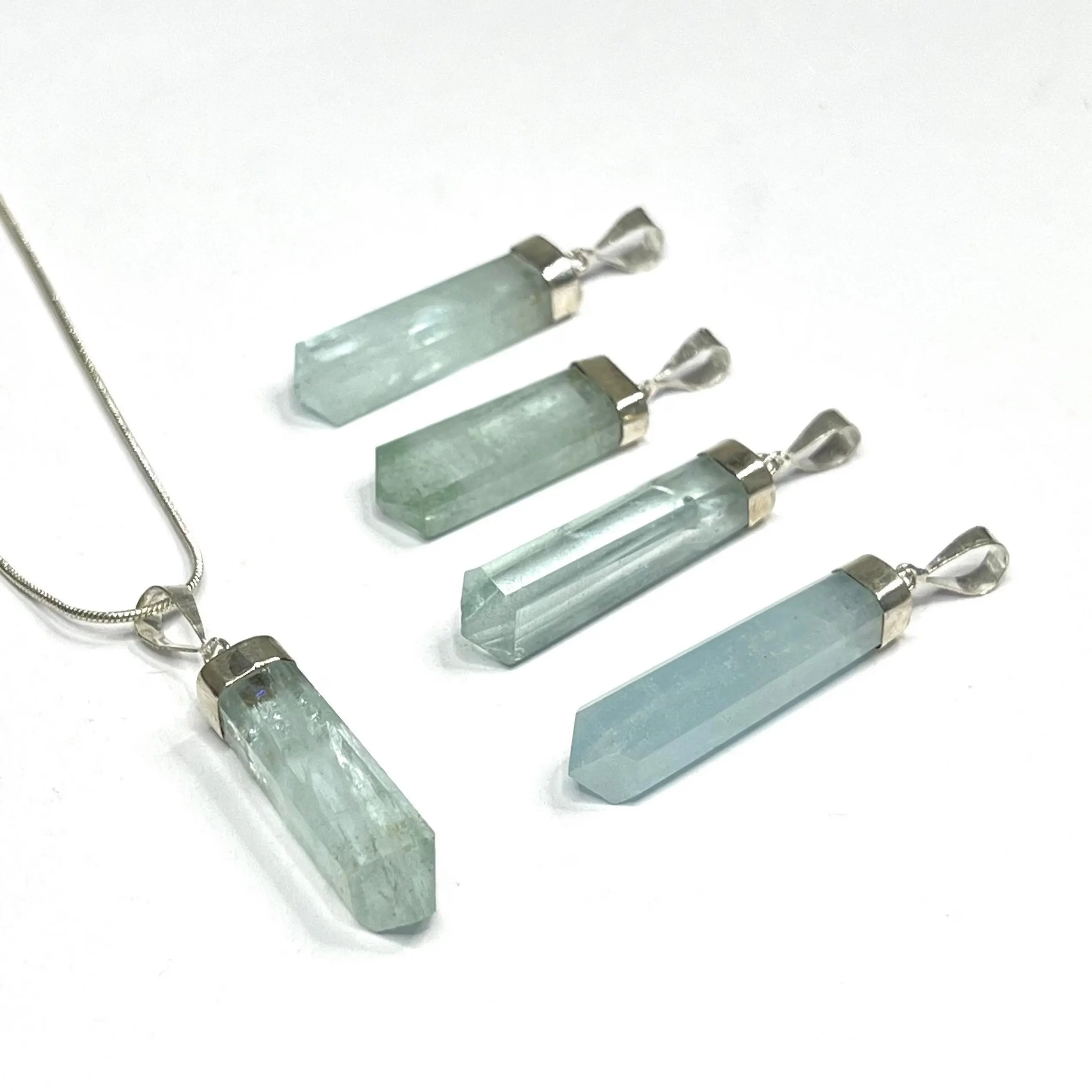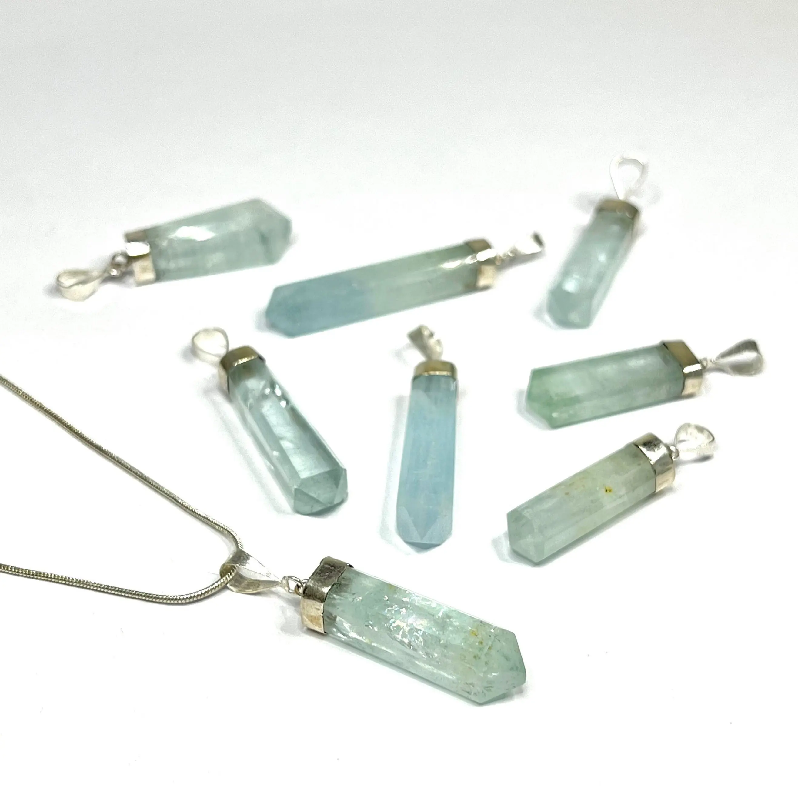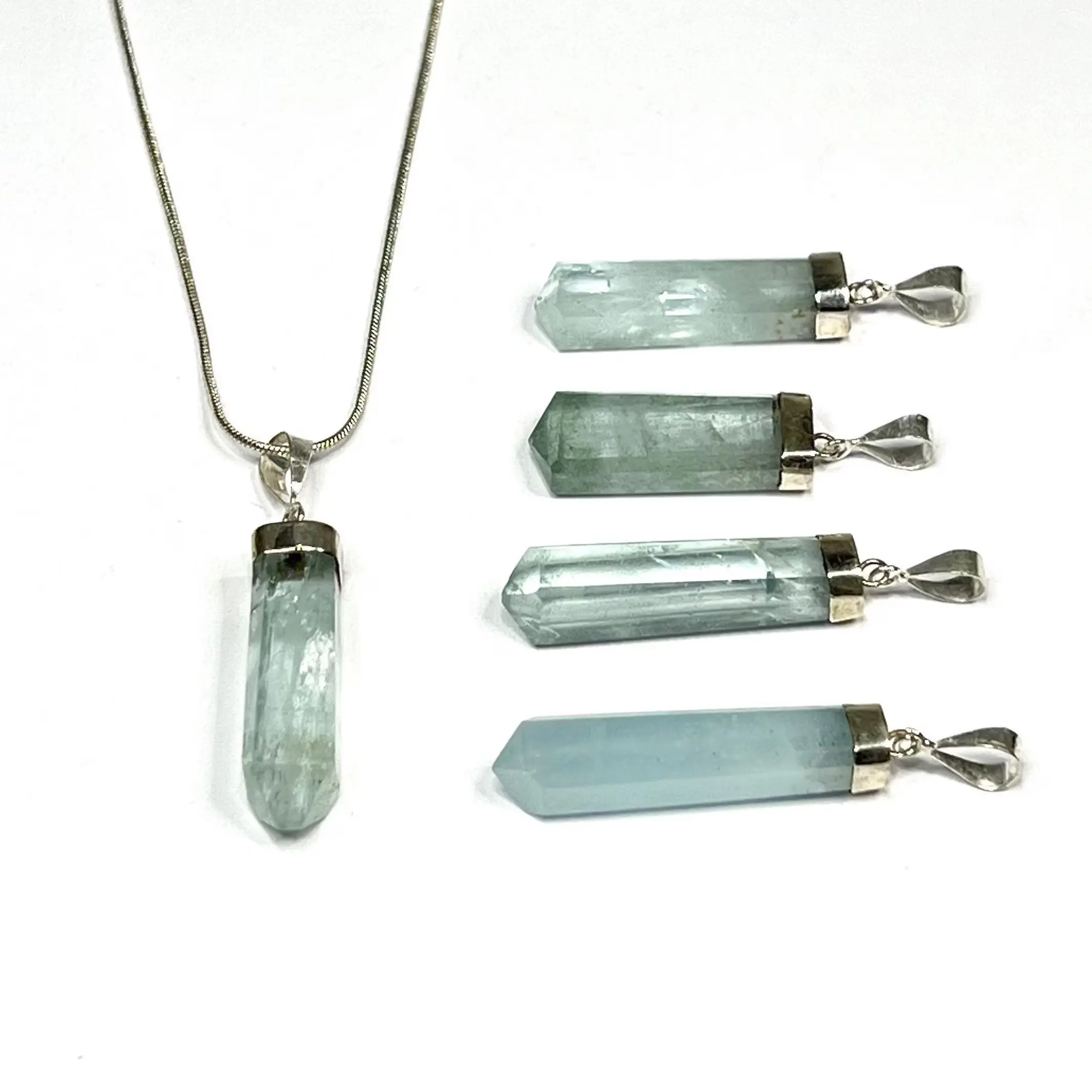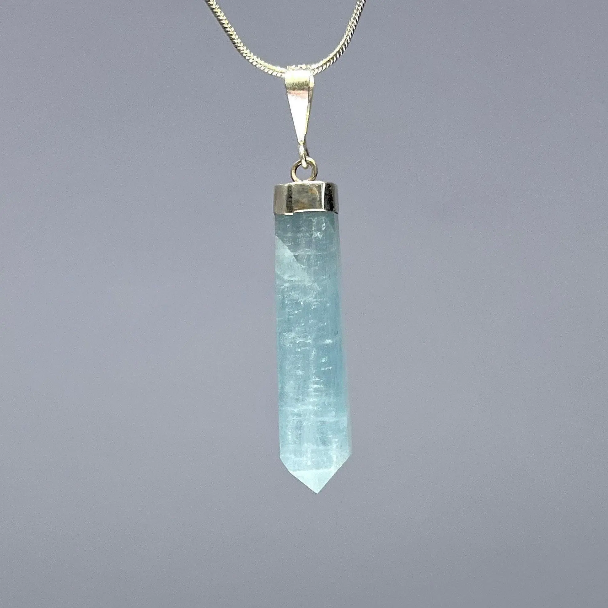 Aquamarine Crystal Necklace, .925 Sterling Silver Pendant with Chain