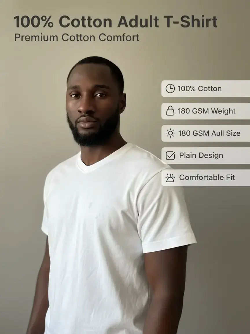 This blank t-shirt is ideal for adults, making it perfect for families, uniforms, printing, or daily wear. It offers a balance of softness, durability, and comfort. Available in White, Black, and Deep Blue, this t-shirt is versatile for various needs. Choose it for its quality and versatility.