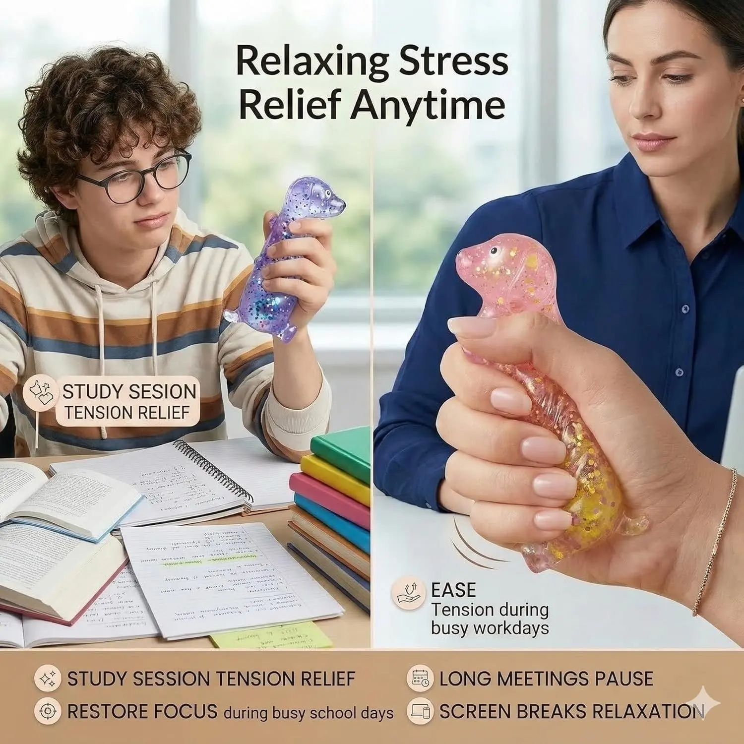 【Stress Relief】: Ideal for anxiety relief, this squishy toy helps calm nerves during home office travel.