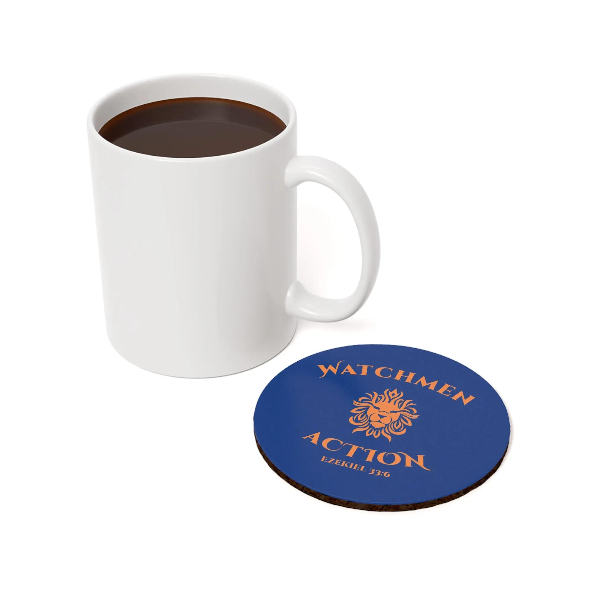 A glossy cork-back coaster that brings quiet confidence to your tabletop. Deep navy meets bold amber in a classic lion crest and arched lettering that reads like a rallying call.
