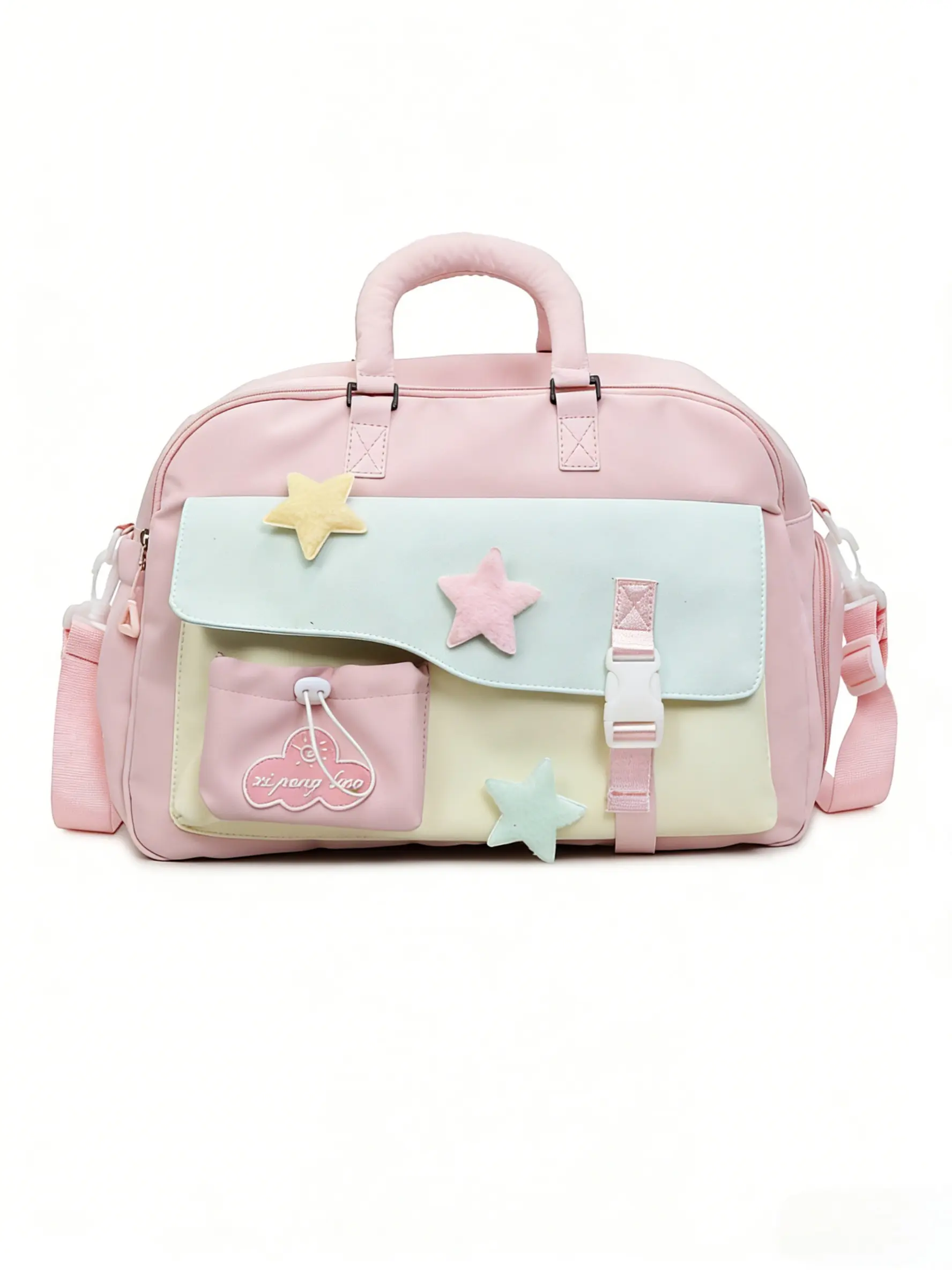Dopamine Star Color Block Fitness Bag, Sweet Girl Style, Crossbody Handbag, Large Capacity, Student Commute Travel Bag