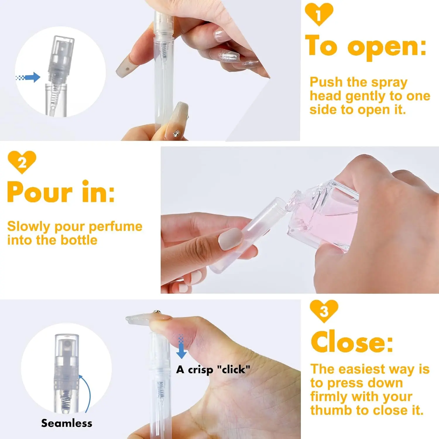 ·3. Fine Mist: Our improved atomizer sprayer ensures an even distribution of a delicate mist, allowing for a seamless and uniform application of your fragrance, toner, and other skincare products