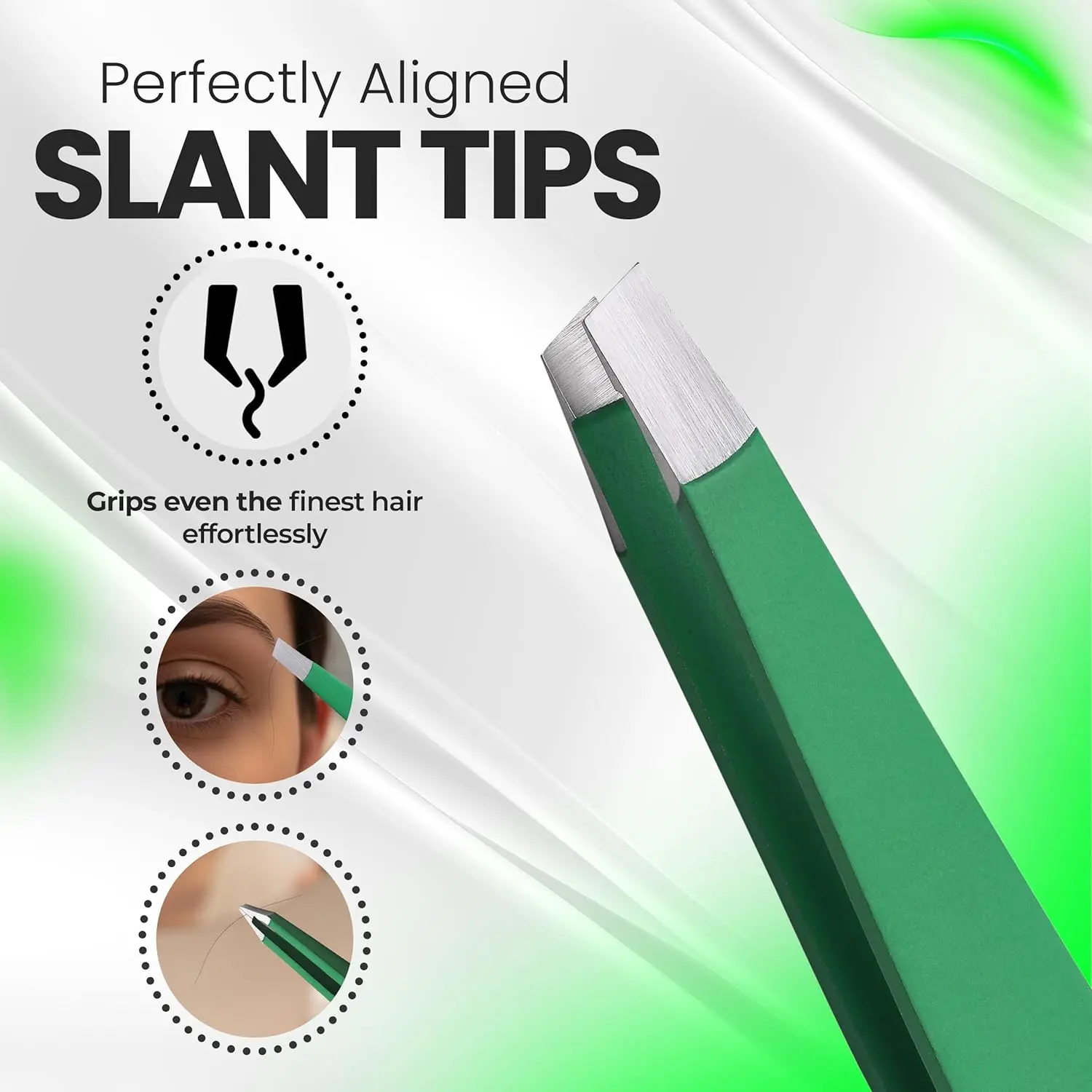 ·Precision in Your Hands: These tweezers are designed with a straight tip, perfect for precise eyebrow grooming. The green color adds a touch of style to your grooming tools. Ideal for those who value accuracy in their beauty routine.