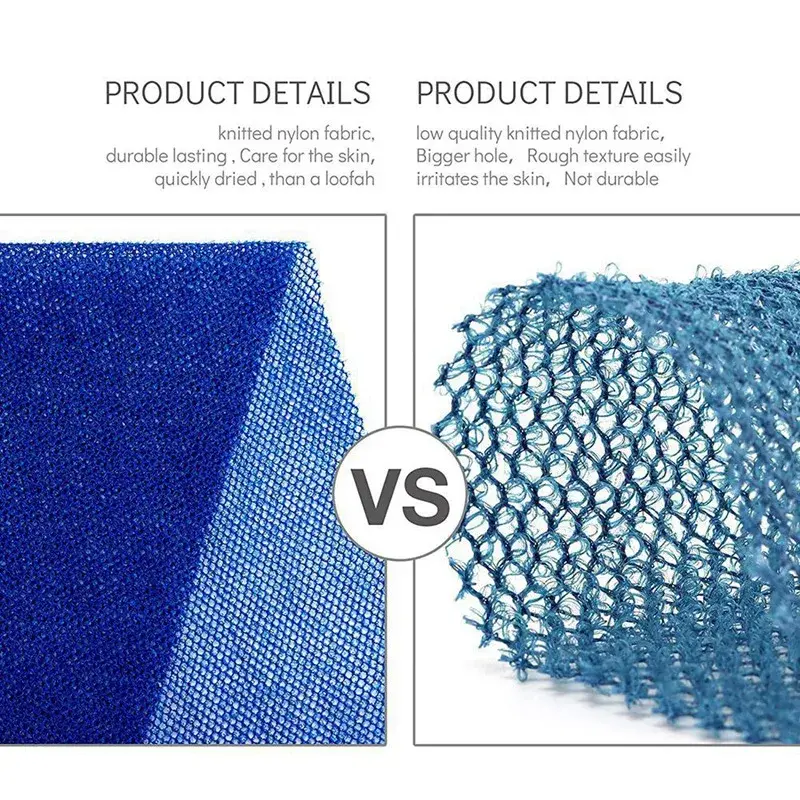 [More efficient cleaning]The exfoliating body net is rougher than a ordinary bathing cloth, but soft enough for daily body cleansing.easy for removing dead skin, dirt, oil, and eliminating impurities, unclogging pores, suitable for women and men of most ages to use