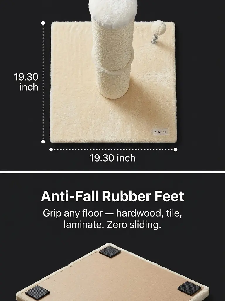 Unlike scratchers with bare patches, the Pawrino post wraps every inch in premium natural sisal rope so your cat always finds a satisfying surface and keeps choosing the post over your furniture. Full coverage from base to top no gaps, no shortcuts.