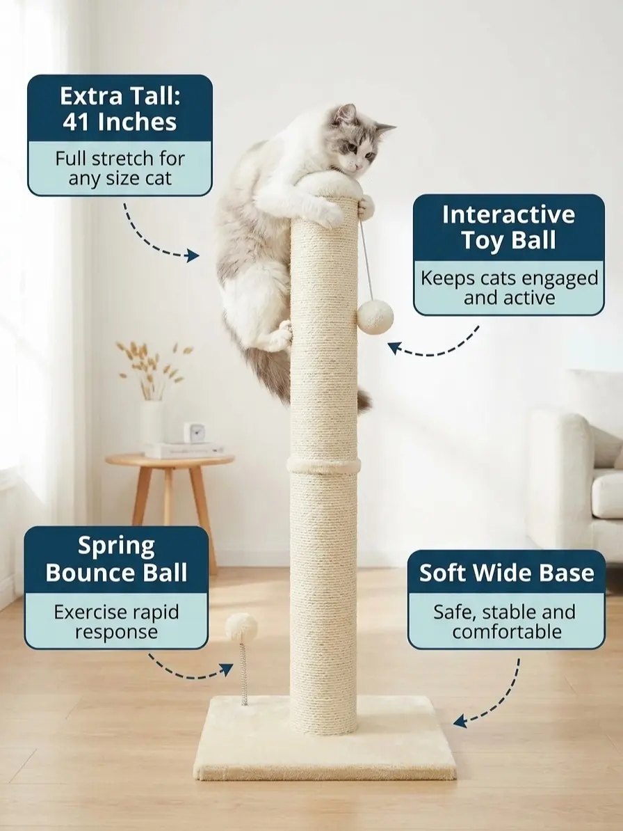 Standing at a full 41 inches, the Pawrino Cat Scratching Post is the only sisal post at this height on the market, giving your cat the full vertical stretch they need to stay healthy and happy. Most scratchers fall short this one doesn't.