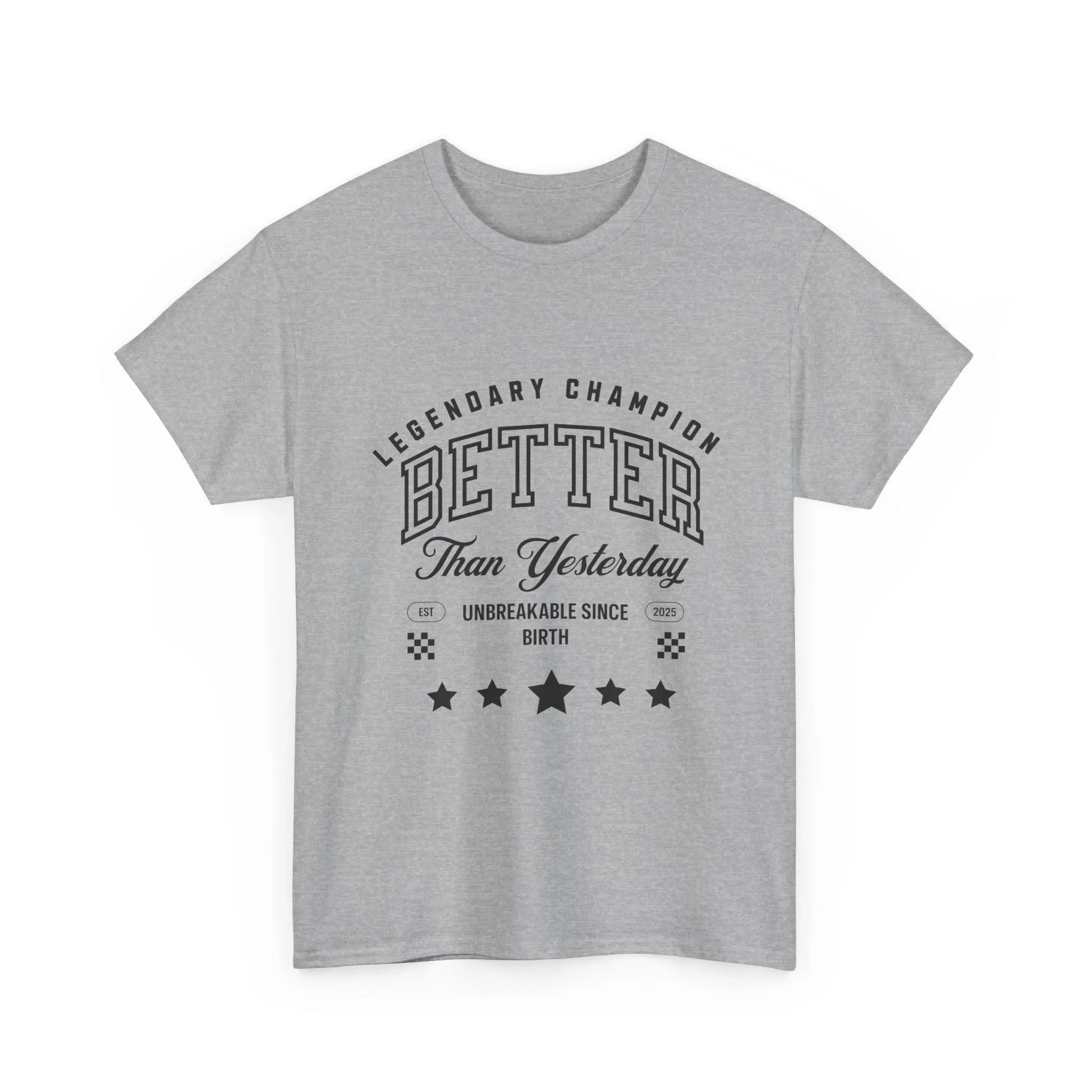 *Different Gray Options With Black Lettering* Level up your style and your mindset with our “Better Than Yesterday – Legendary Champion” graphic t-shirt. Designed for dreamers, doers, and everyday champions, this tee is a powerful reminder that progress, not perfection, is what makes you unstoppable. Whether you’re crushing a workout, chasing goals, or just need a daily dose of motivation, this shirt brings the perfect mix of comfort, confidence, and inspiration.