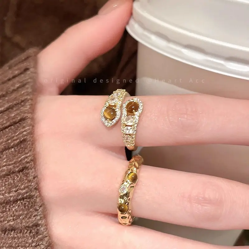 The Maillard snake-shaped tiger's eye open ring is a unique design for women, a retro index finger ring with a sense of high-end luxury