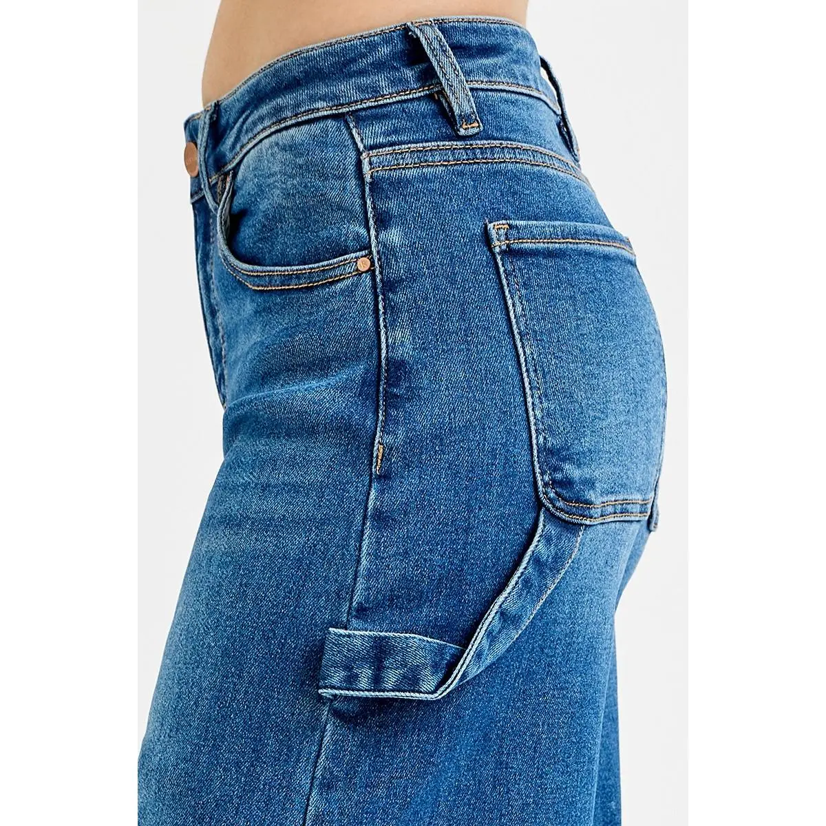 These high-rise wide leg jeans feature unique patch detailing for a trendy and stylish look. The wide leg silhouette creates a flattering and comfortable fit that can be dressed up or down. Perfect for making a statement with your denim, these jeans are sure to elevate any outfit. Add a touch of bold flair to your wardrobe with these patch detailed jeans.