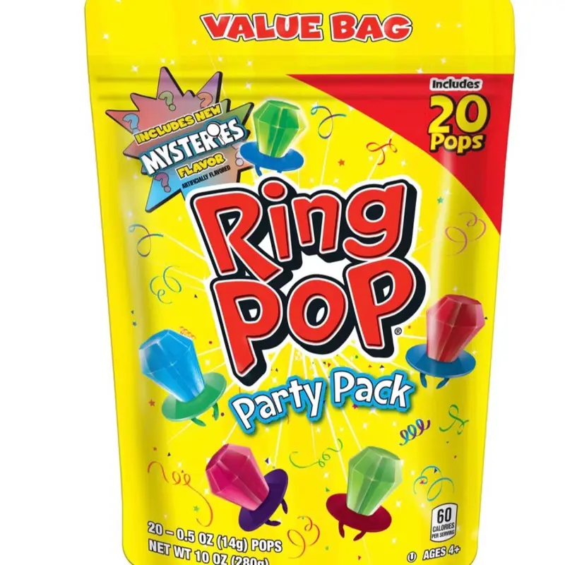 Ring Pop Party Pack Value Bag with 20 Pops Includes New Mysterees Flavor 0.5 oz Pops for Ages 6+