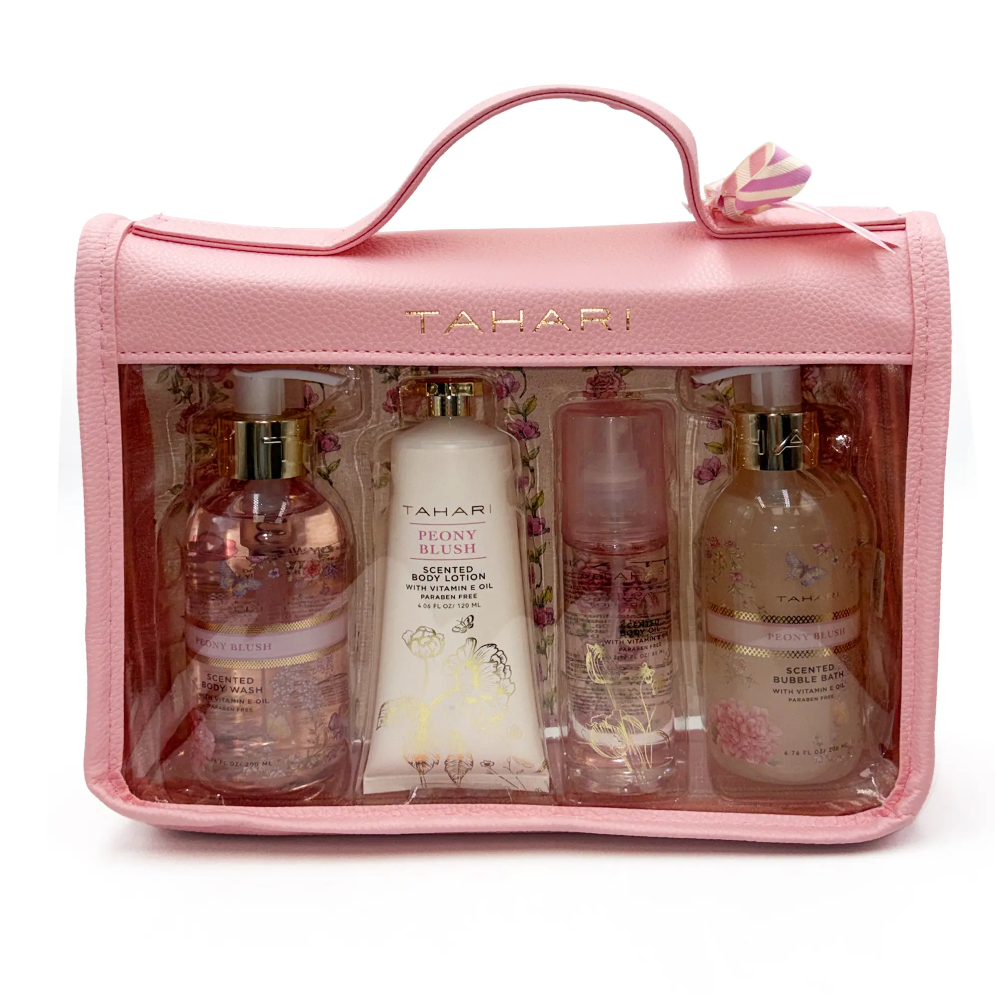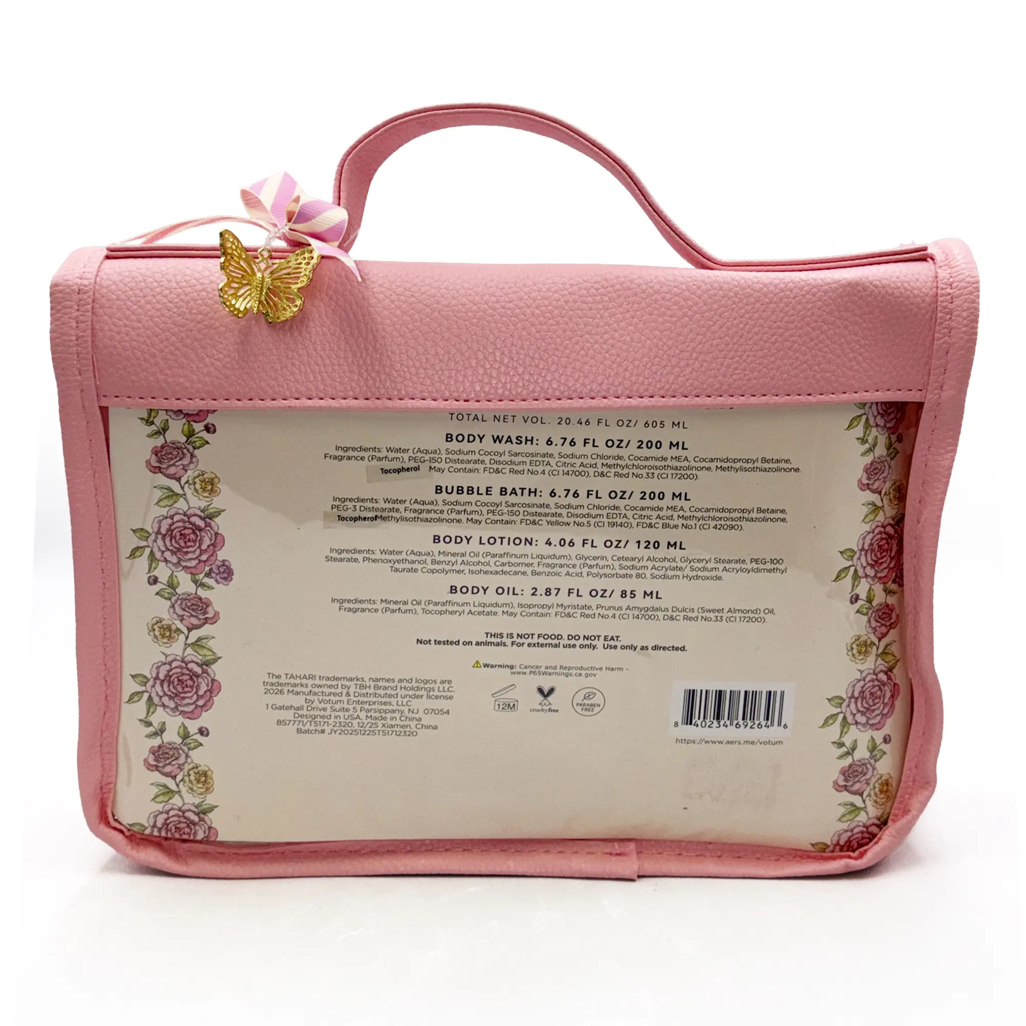 -A beautifully packaged Tahari bath & body set in a soft peony floral theme.