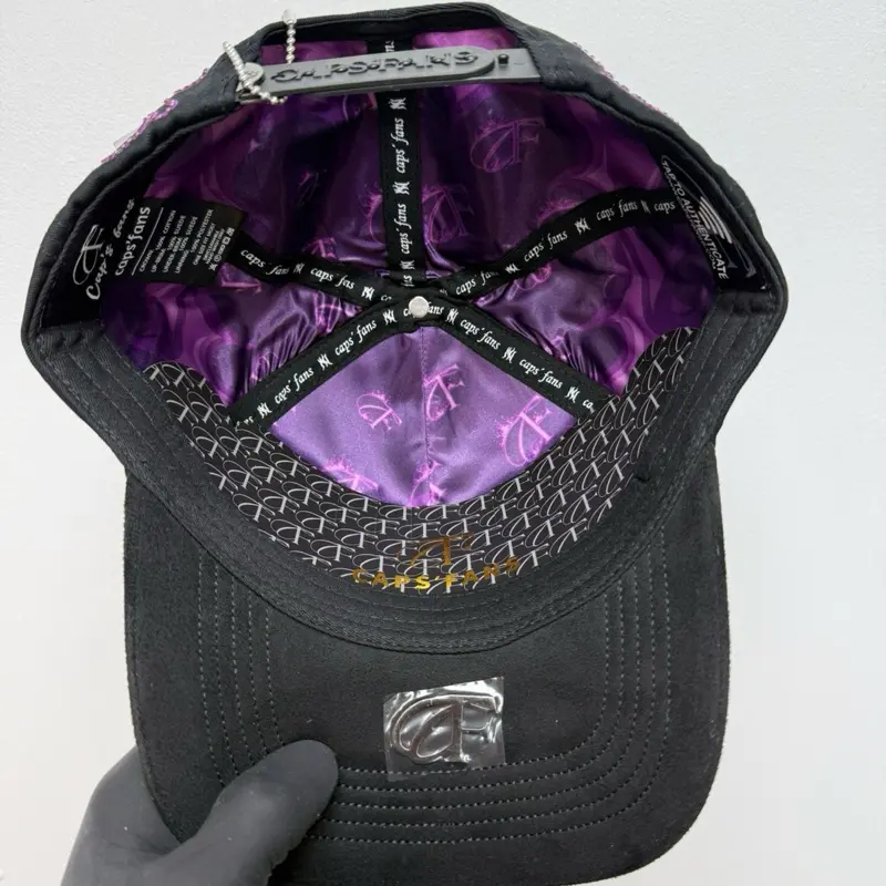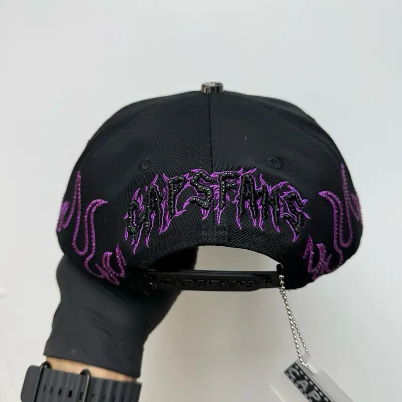 Custom Hats Now - Black Baseball Cap with Purple Embroidery and Unique Design