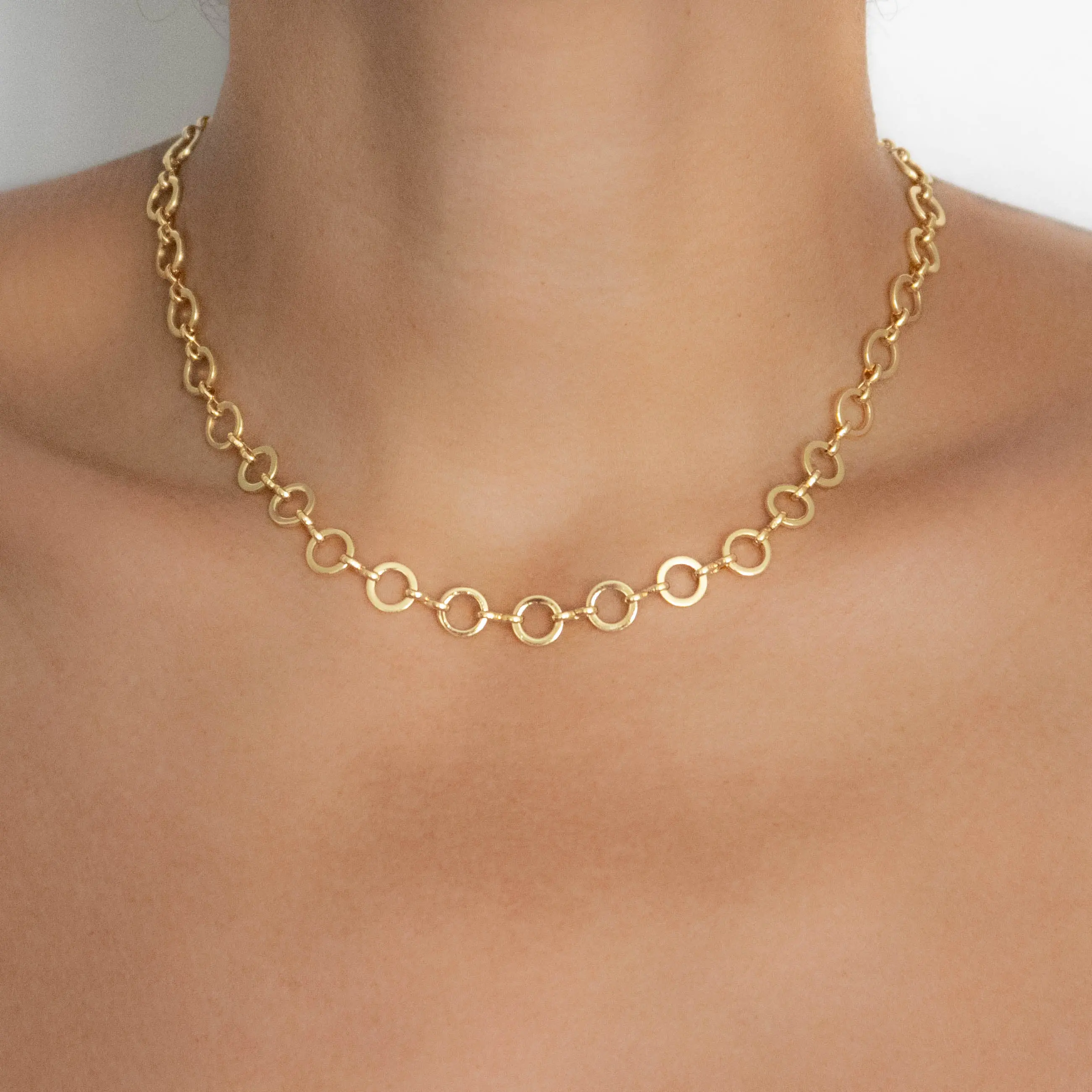 A dainty statement necklace. Perfect for layering. A great everyday piece to wear with other styles. Created in a choker length to mix with other chains for layers or worn alone as a beautiful dainty statement piece.