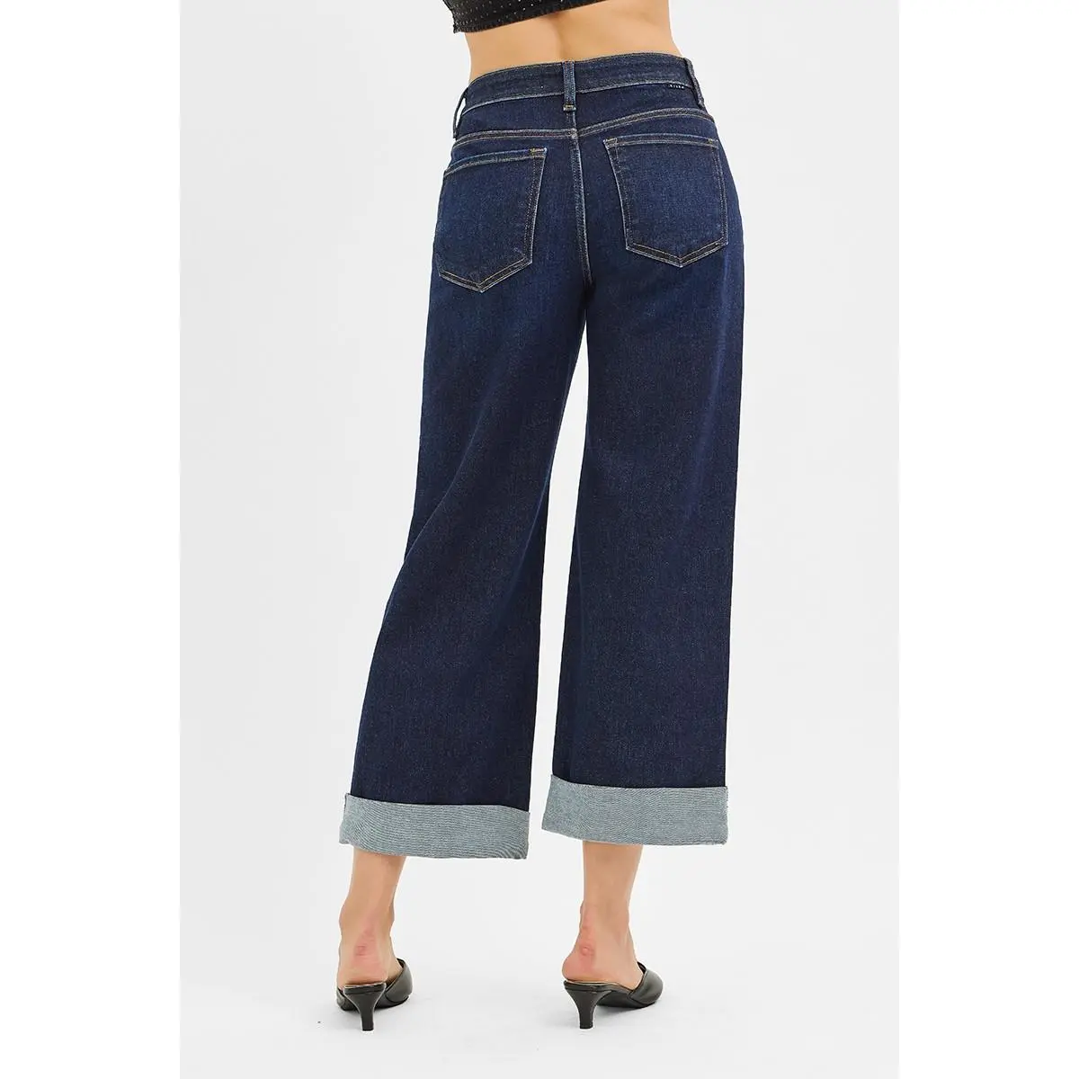 These mid-rise jeans offer a flattering fit and a trendy ankle length. The wide roll-up cuffs add a stylish touch to your everyday look. Made with stretchy denim for comfort and ease of movement. Perfect for pairing with sneakers or heels for versatile styling. Update your denim collection with these chic and versatile jeans.
