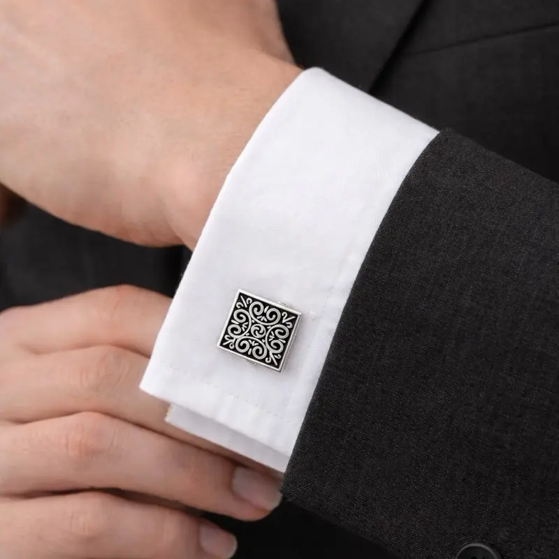 Add a touch of elegance to your outfit with these refined silver square cufflinks featuring an intricate vintage filigree pattern. Designed for modern gentlemen, they perfectly complement both formal and business looks.