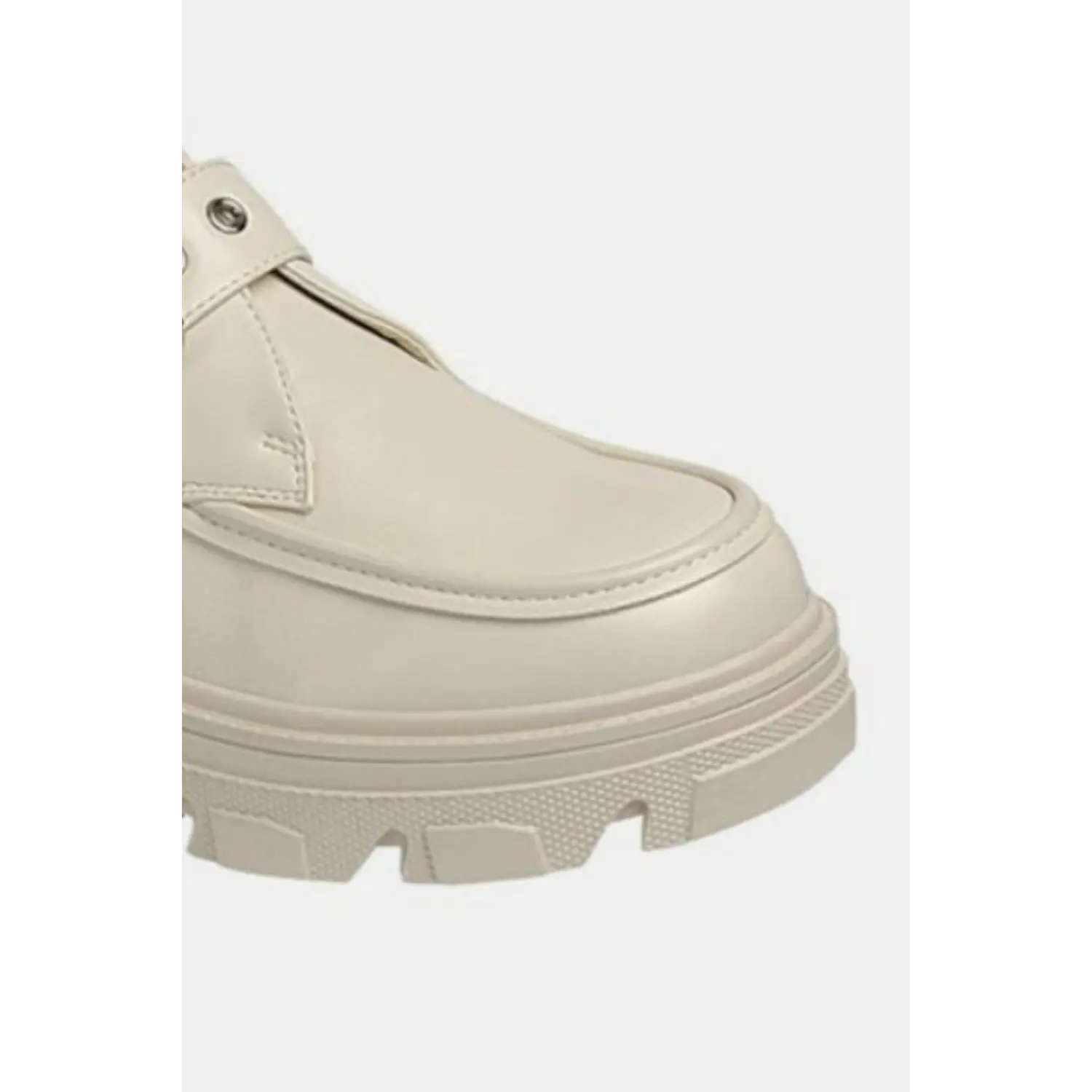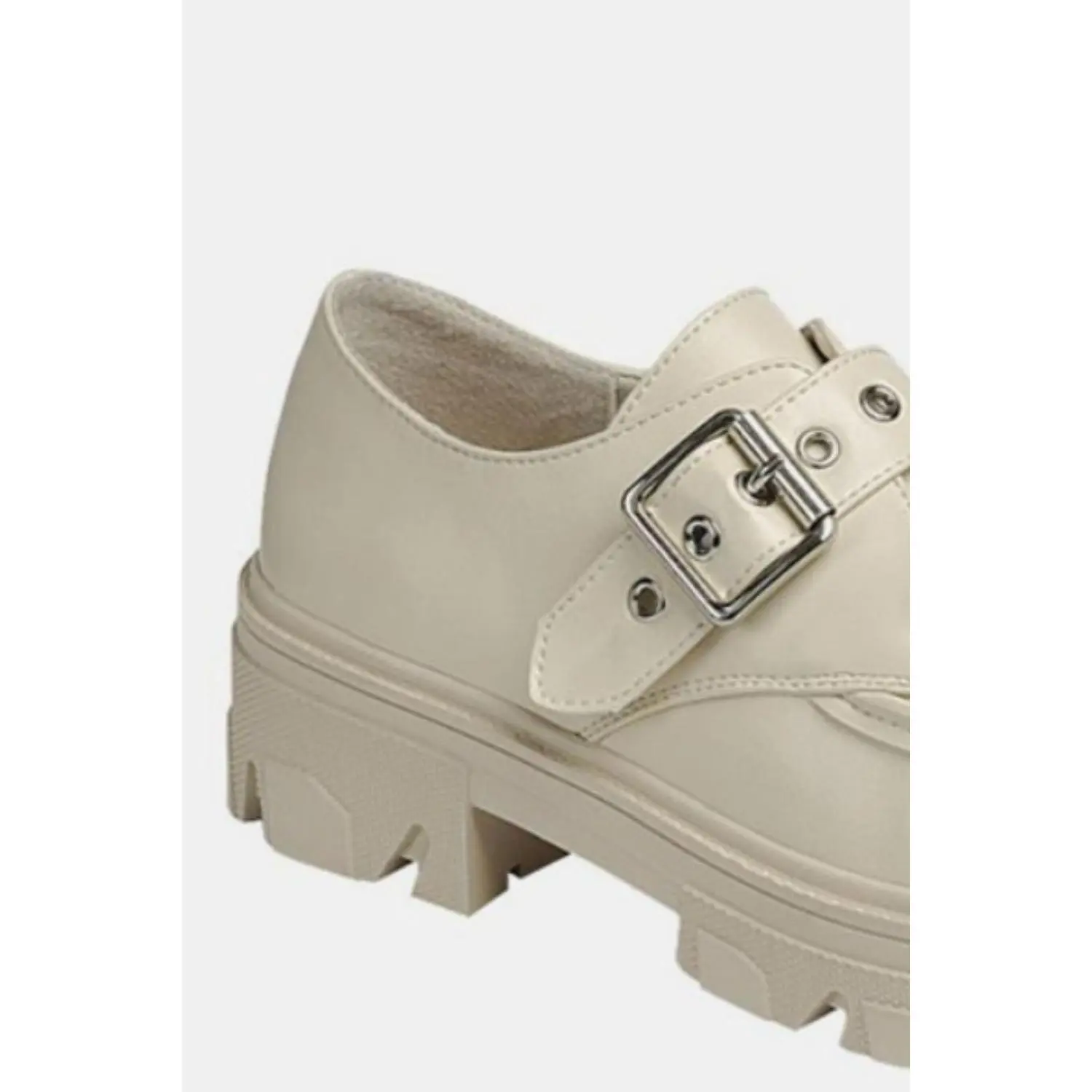 Buckled platform lug sole loafers are a trendy fusion of comfort and style. Featuring a bold platform and rugged lug sole, they provide excellent traction and support for all-day wear. The buckle detail adds a unique touch, making them stand out in any outfit. Whether paired with jeans or tailored trousers, these loafers effortlessly elevate your look. Ideal for both casual outings and more polished ensembles, they offer versatility without sacrificing flair. Step out in confidence with these chic and functional loafers!