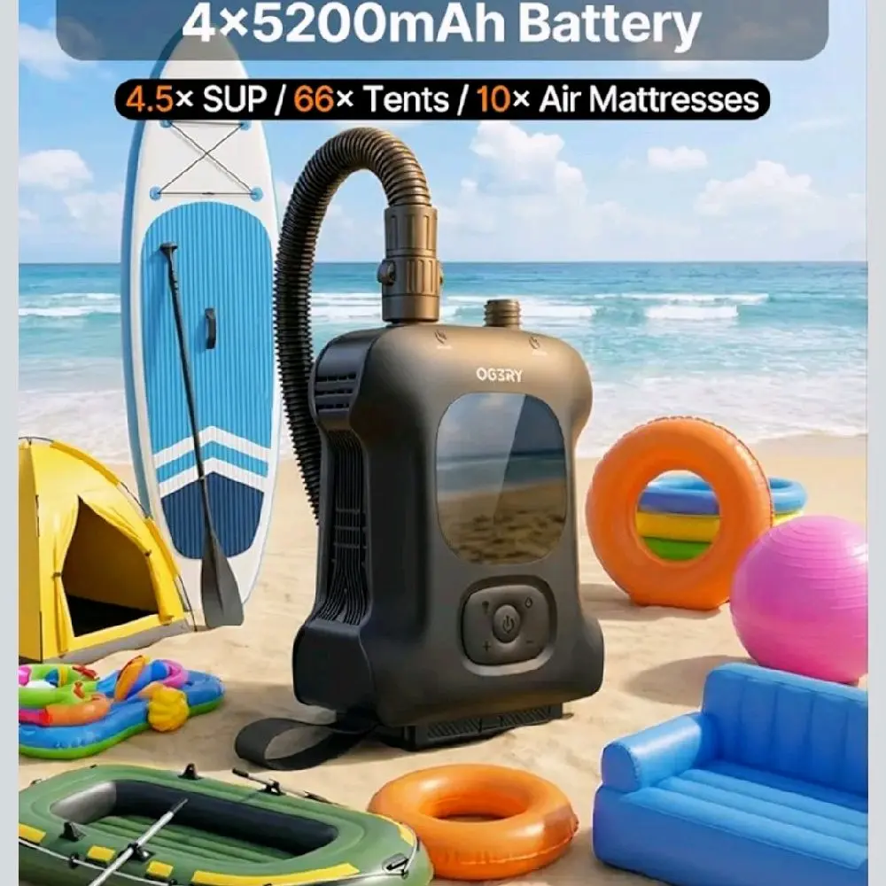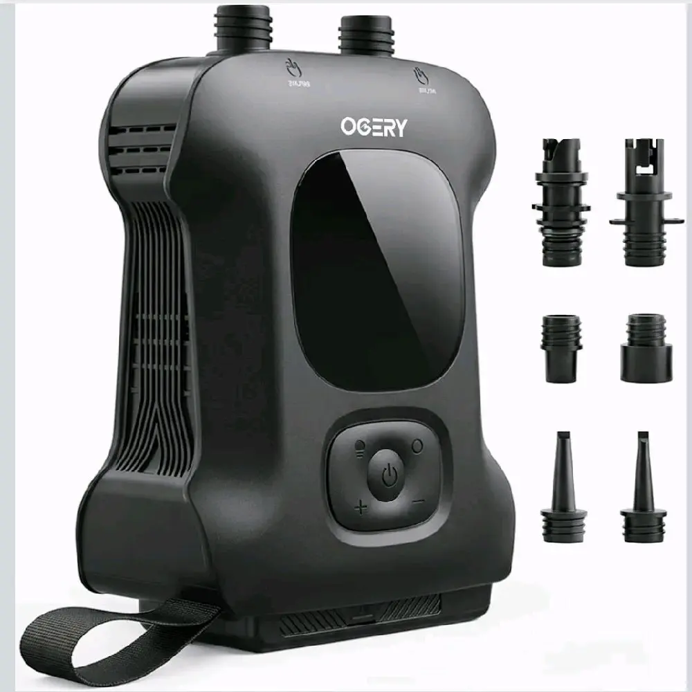 Includes 6 versatile nozzles compatible with SUPs, kayaks, tents, air mattresses, swim rings, and more. No extra adapters needed. 🛠️