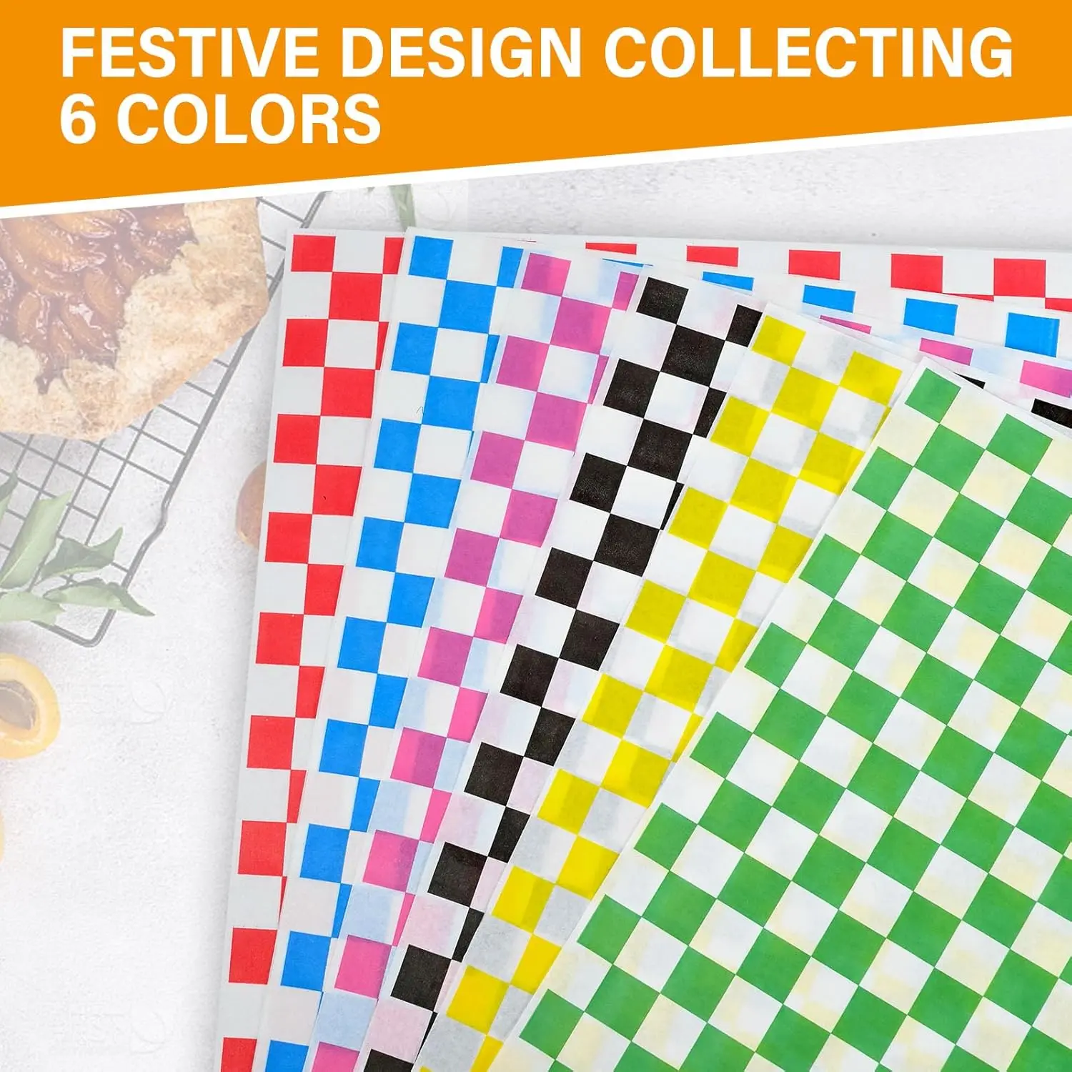·Colorful Festive Design: Included 120Pcs Deli Paper Sheets come in 6 colors*20 sheets each colors: red, black,blue, green, yellow and pink; perfect for adding a festive touch to your food presentation at parties, fairs, and outdoor events
