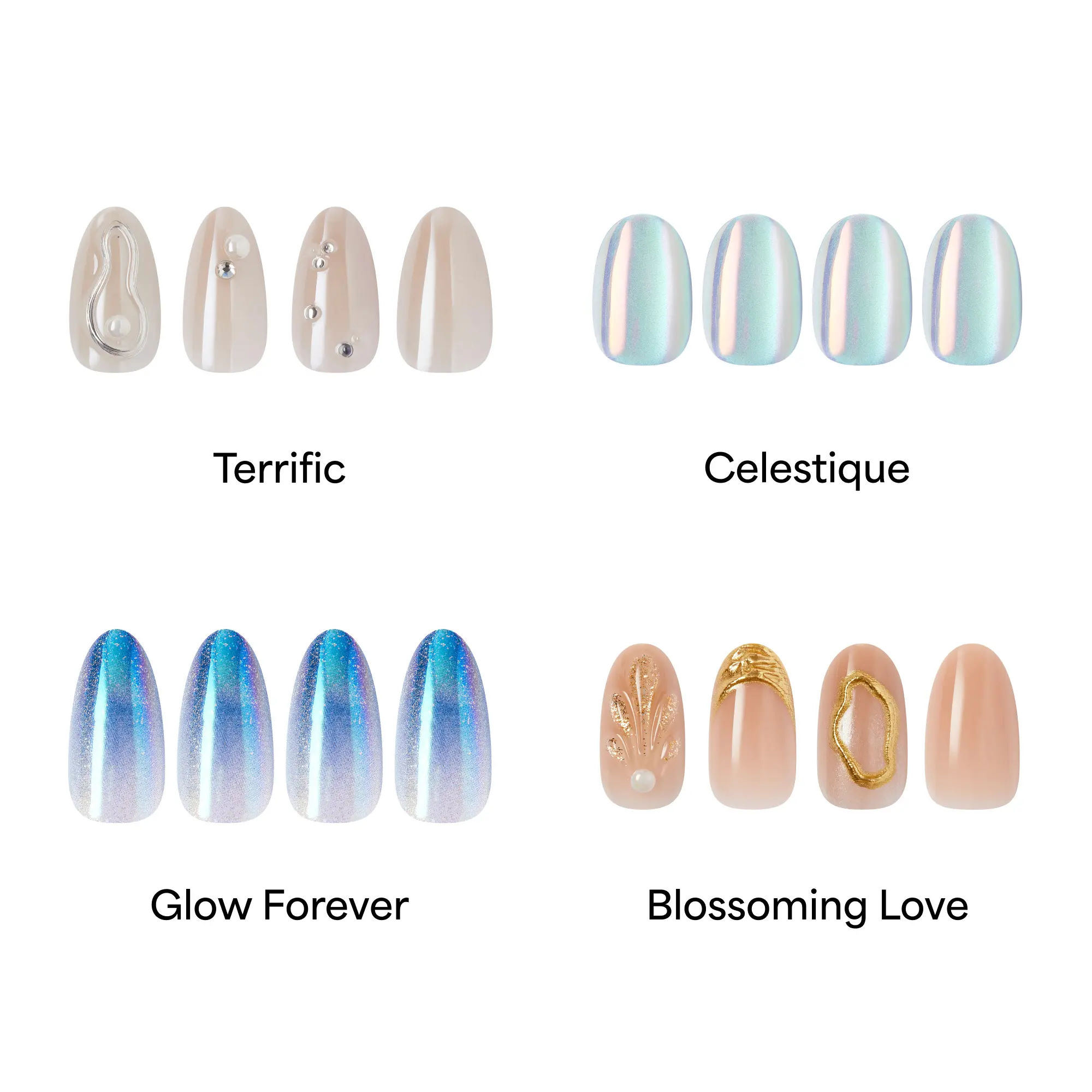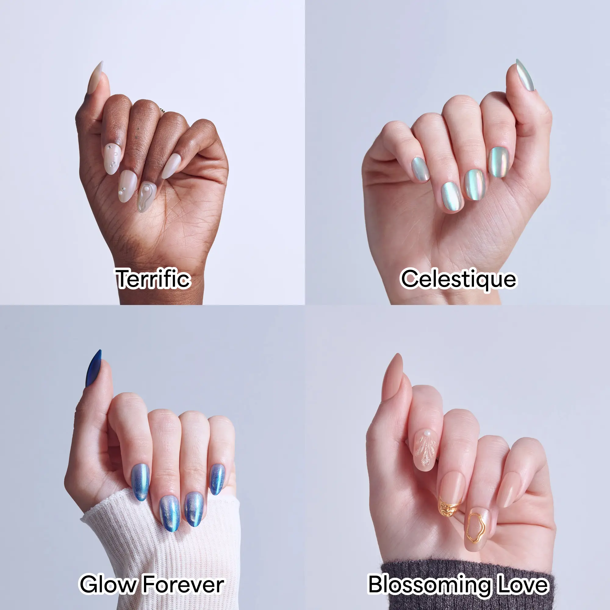 Dive into the Ocean Glow Bundle—a curated edit of nails inspired by the shimmer of open water. With pearly finishes, reflective shine, and soft, aquatic tones, each style delivers a polished, high-impact look with a fluid, luminous feel.