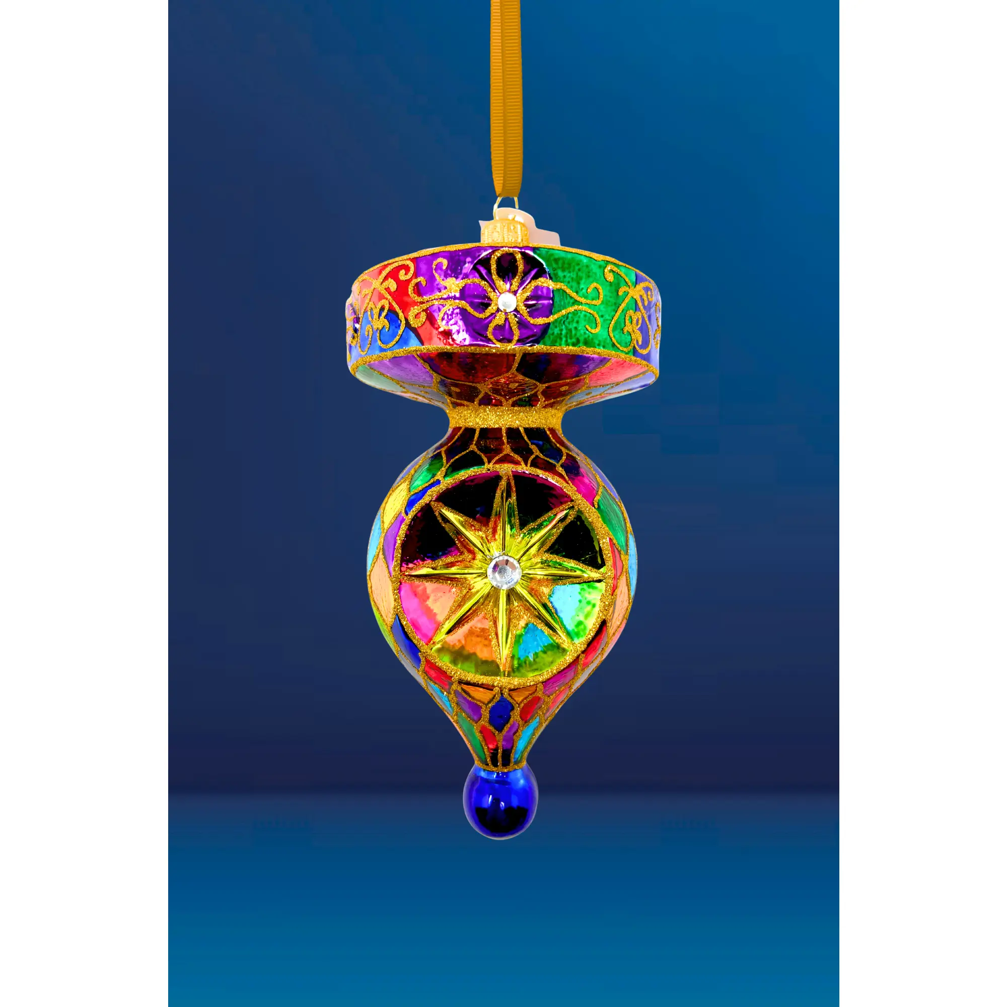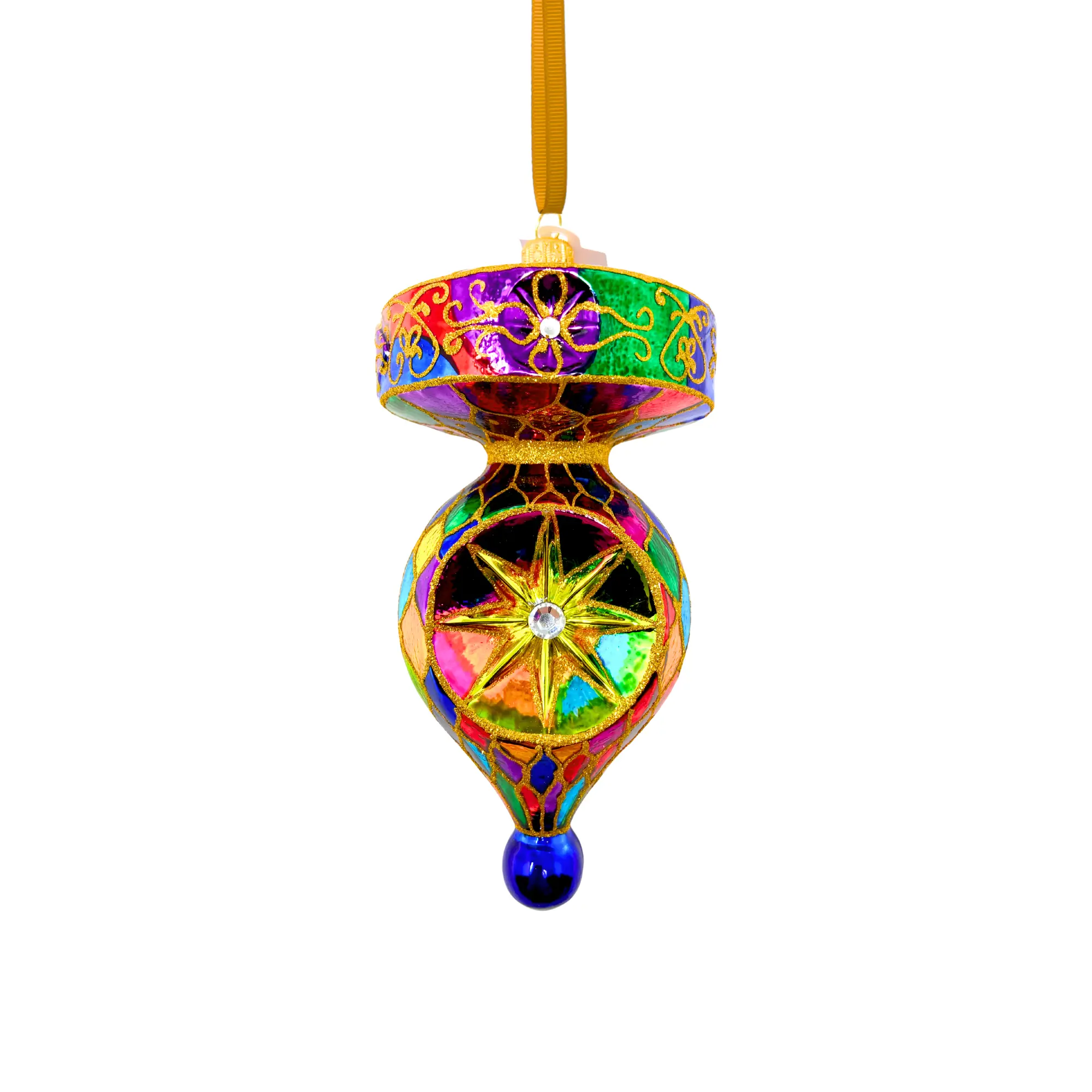 Faceted color panels surround a luminous star, designed to shimmer as it moves. The geometry reflects light differently from every angle, creating a sense of motion even at rest. It brings energy to the tree without sacrificing elegance.