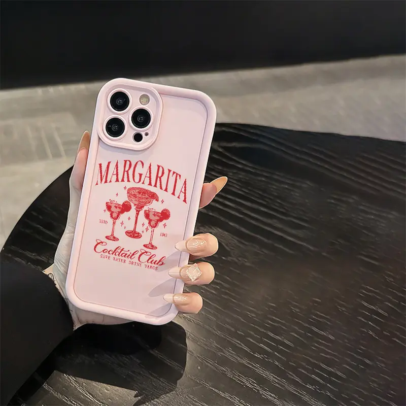 1x High Bamboo Pink Style Margarita Cocktail Pattern TPU Material Drop-Proof Case with Precise Cutouts and Full Coverage Protection, Suitable for iPhone 17 E Air Pro ProMax iPhone16 15 14 Plus 13 12 Mini 11 X XS XR