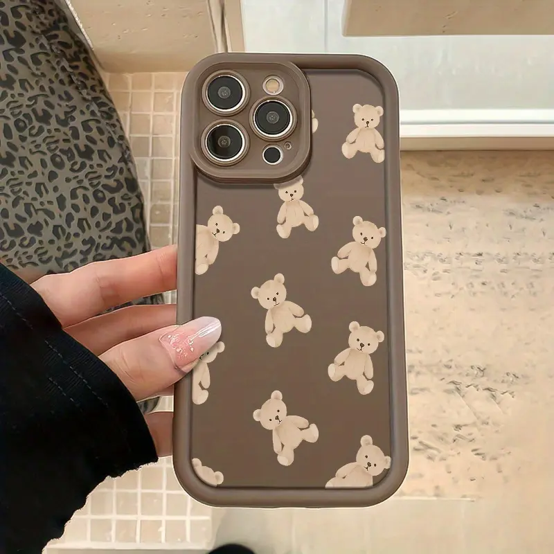 Brown Phone Case with a Cute Bear Pattern Print, Made of TPU Material, Drop-proof, with Precise Cutouts for Full Coverage Protection. Suitable for Apple iPhone 17 E Air Pro ProMax iPhone16 15 14 Plus 13 12 Mini 11 X XS XR. The Best Choice for a Gift