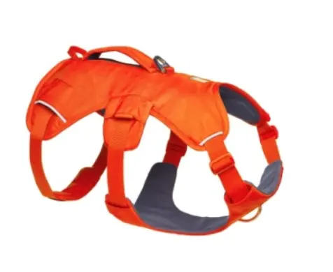 • Three leash attachment points: aluminum V-ring, reinforced webbing loop on the back, and reinforced webbing loop on the chest for redirecting dogs that pull on leash