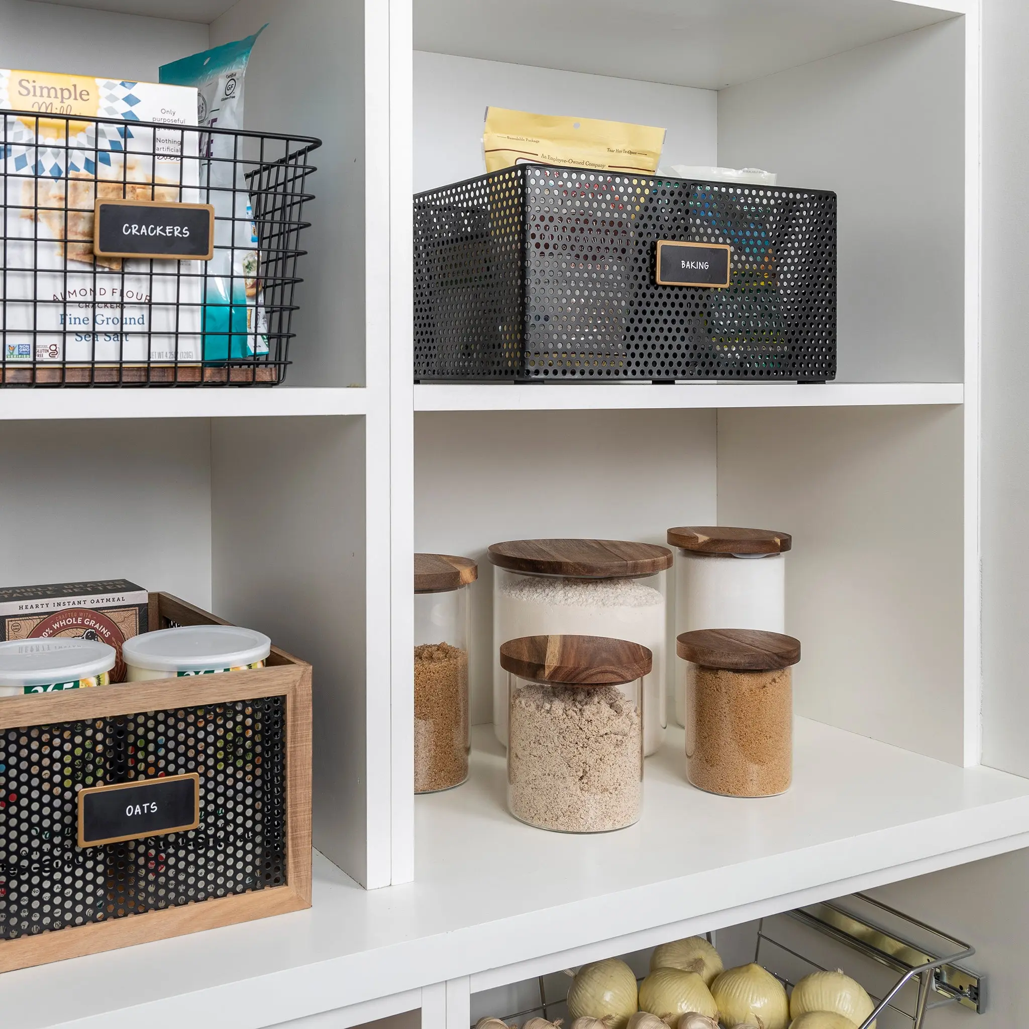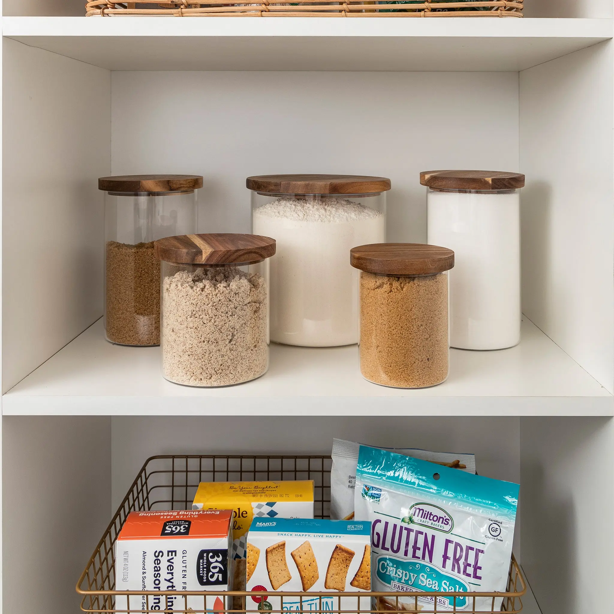 Designed to look as good as they function, our Glass Jars with Acacia lids keep everything from coffee to cereal fresh and beautifully organized. Made from durable borosilicate glass (with 10% recycled content) and airtight lids, they come in four sizes for storage in kitchens, offices, bathrooms, and beyond.