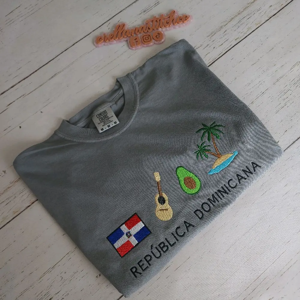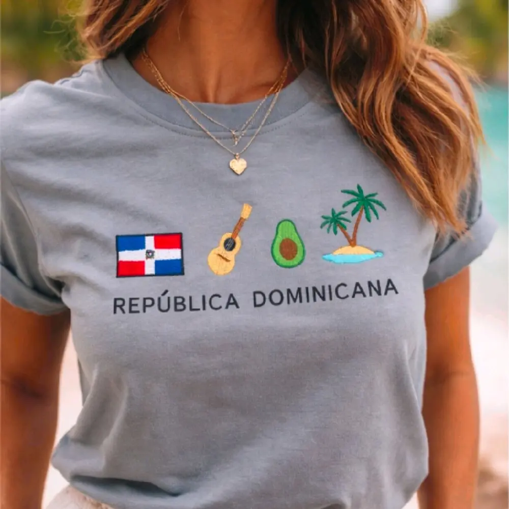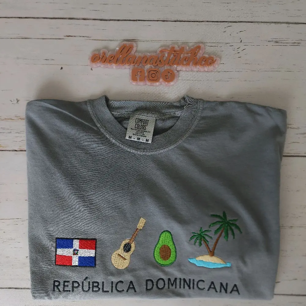 This embroidered tee brings together everything we love about DR — la bandera, la música, tropical vibes, and la playita 🌊