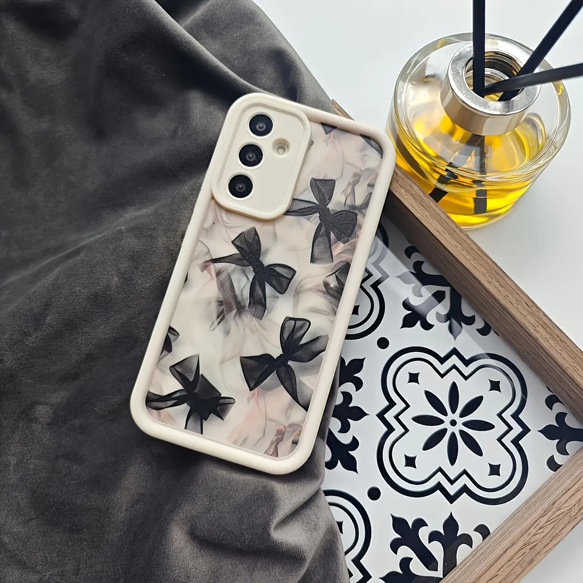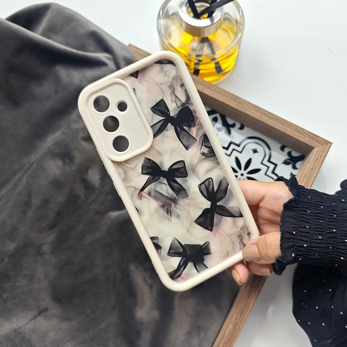 Translucent Bow Black Full-Screen Painted Cute Fresh and Charming Creative Beautiful Innovative European American Girls Dark,White Suitable for Samsung Galaxy S26 S25 S24 S23 S22 S21 Fe Plus Ultra A13 A14 A15 A16 A17 A33 A34 A35 A36 A52 A53 A54 Note20