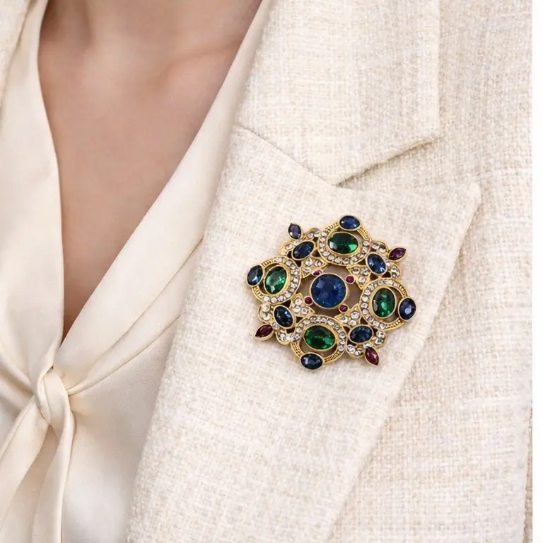 Perfect for jackets, blouses, dresses or evening outfits, this brooch instantly elevates any style with regal elegance.