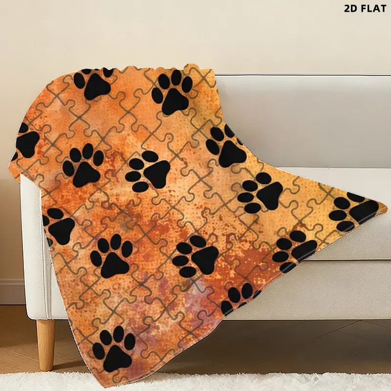 5. Paw Print Puzzle - Style Throw Blanket, Single - Sided Printed, Multiple Specifications Available, Warm Earthy Gradient Background, Playful Design for Pet Lovers, Ideal for Napping & Home Decor