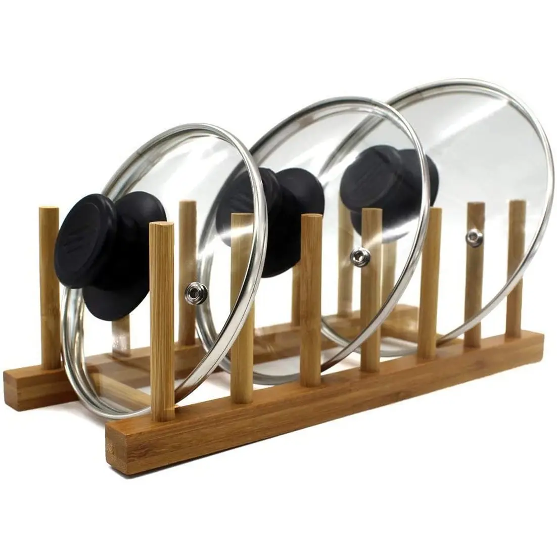 ·【Versatile Functionality】: Measuring 11.8" x 4.73" x 3.9", this compact bamboo rack is perfect for small cabinets and limited countertop space. Designed with 6 slots, it can hold up to 6 plates, pot lids, cutting boards, or cups. Beyond the kitchen, it also works great as a stand for books, tablets, or even laptops—offering flexible organization wherever you need it.