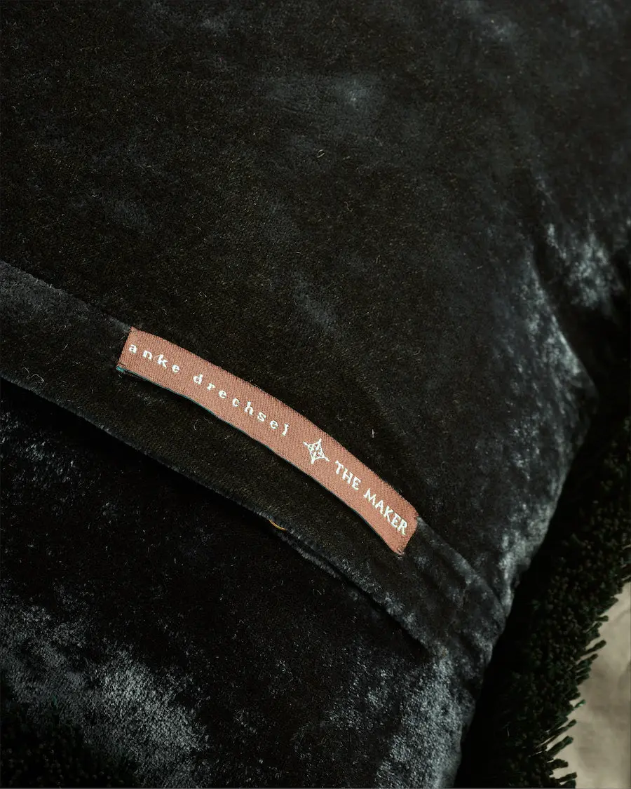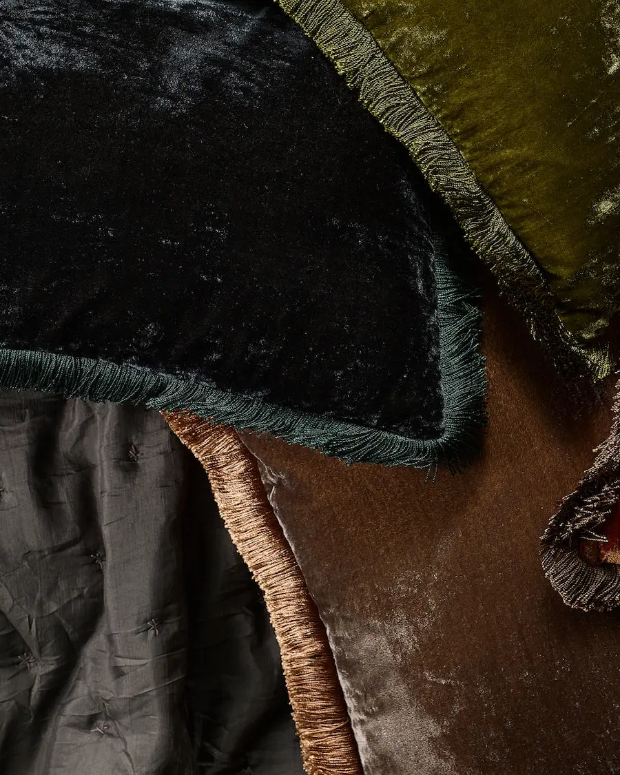 Silk Velvet Fringed Cushion in Maker Green