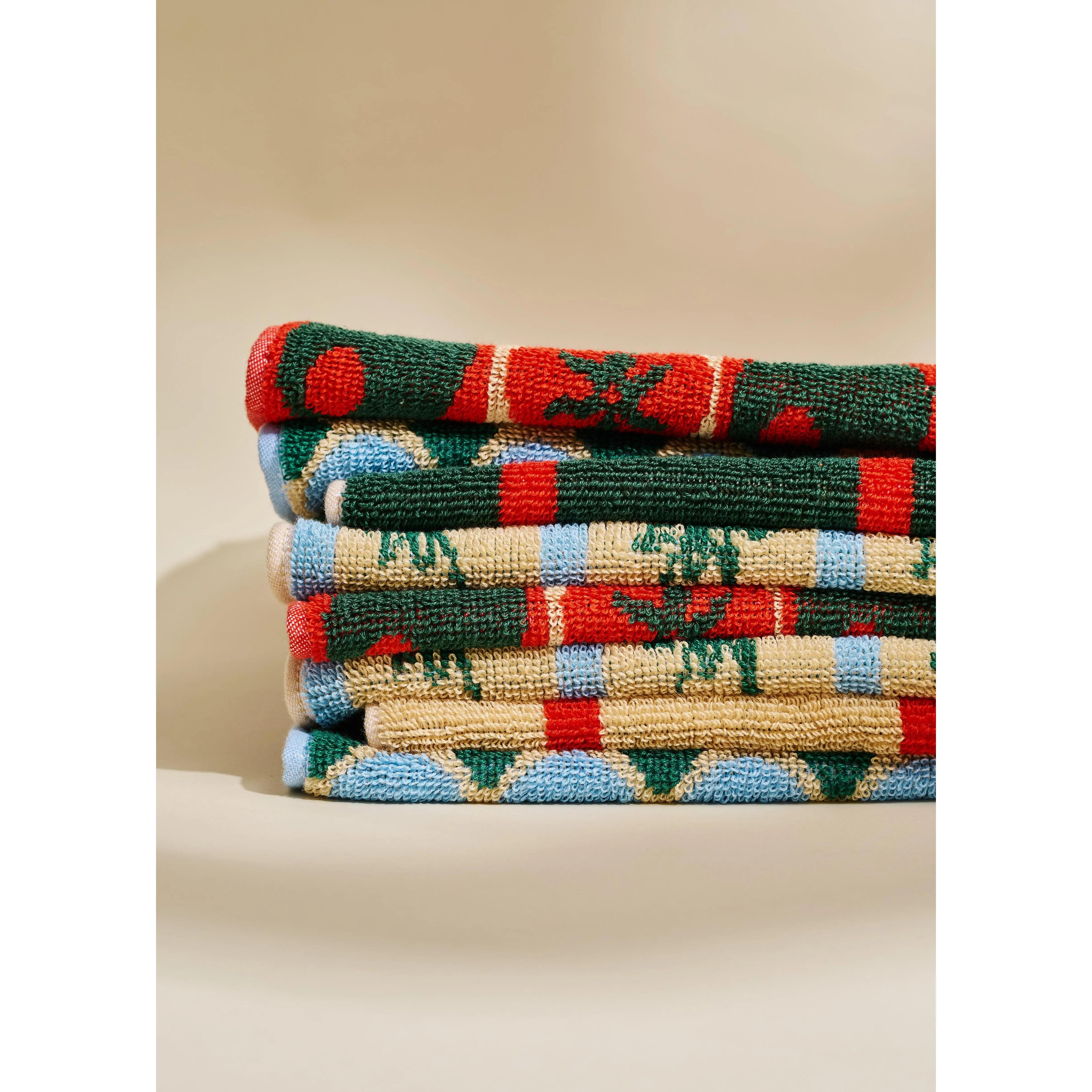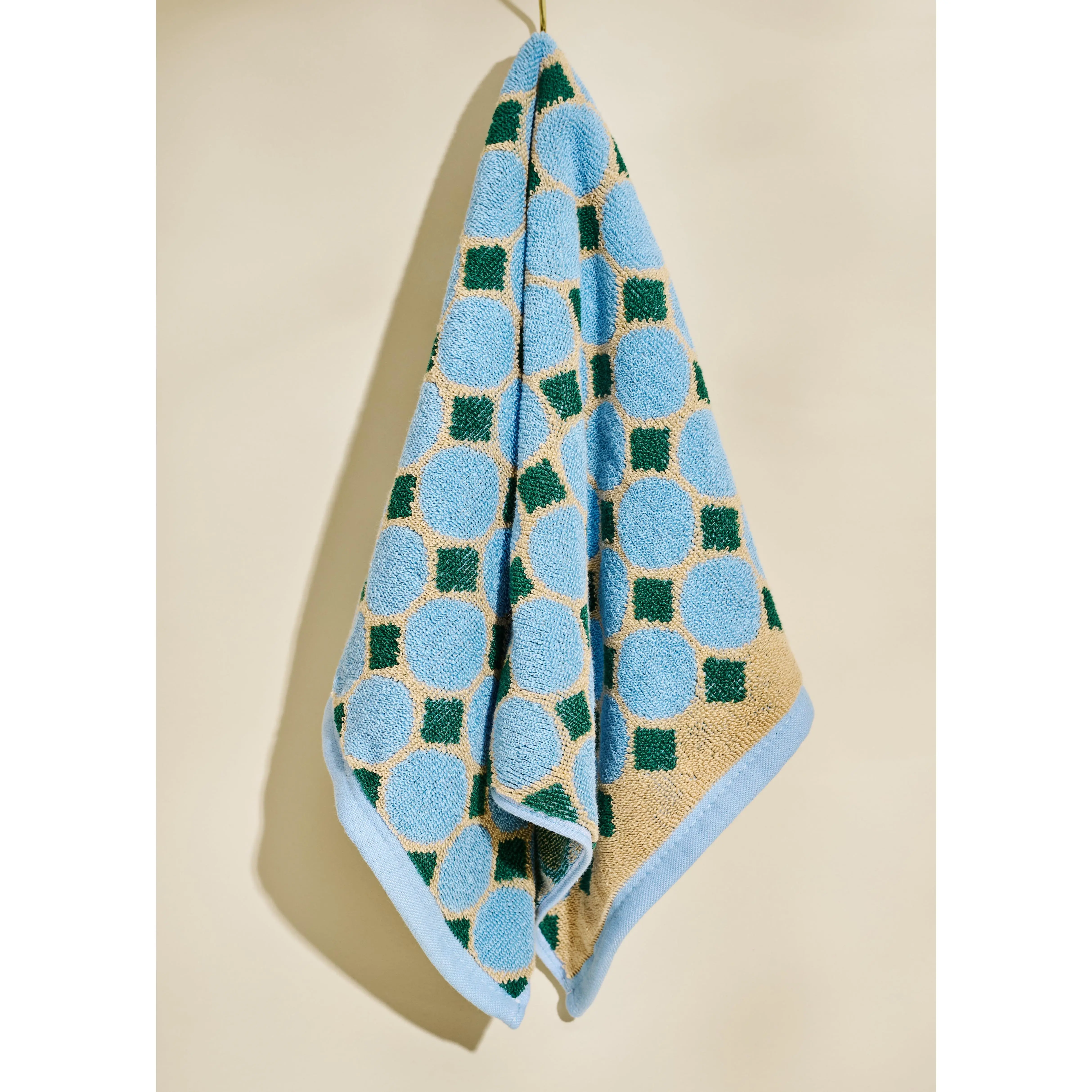 Soft blue circles and green squares against a sandy backdrop feel like an afternoon spent floating on a pool raft, lemonade in hand. This geometric pattern is cool and crisp, and perfect summer decor.