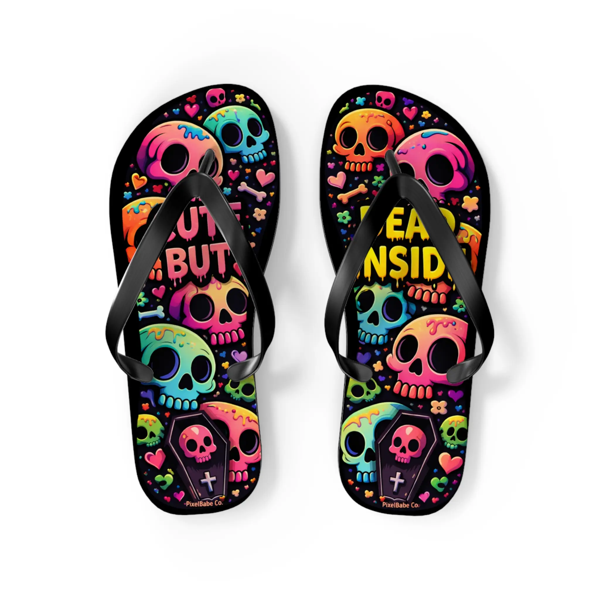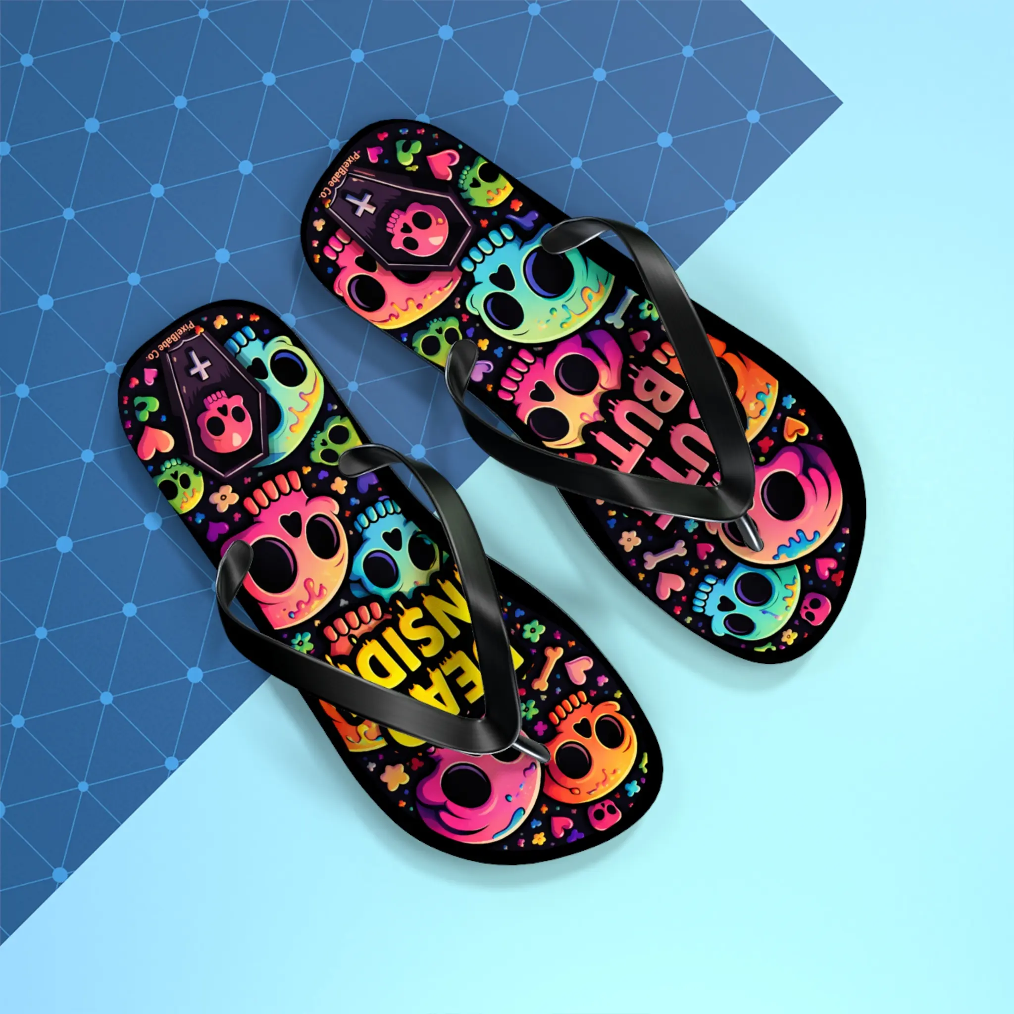 Bright, playful flip flops that bring a burst of neon energy to warm-weather days. The soft polyester suede top keeps the colorful skull-and-hearts artwork vibrant and comfortable underfoot, while the lightweight 15 mm EVA sole cushions each step. A textured, slip-resistant outsole and sturdy black PVC straps keep you steady from boardwalks to backyard parties. These sandals run true to size and come in multiple sizes, so you can step out confidently in bold color and comfort.