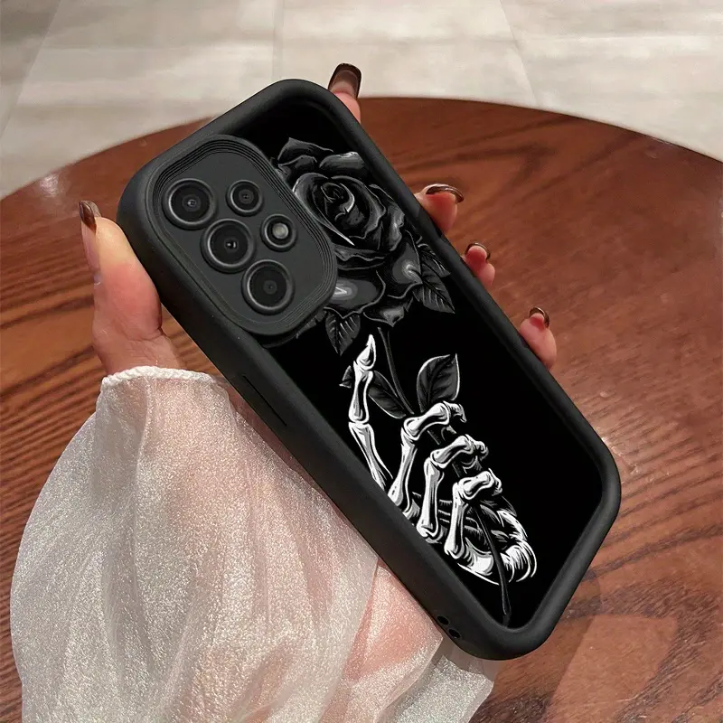 A Phone Case Featuring a Skeleton Hand Holding a Black Rose, Compatible with Various Galaxy Models Including Samsung Galaxy S26 S25 S24 S23 S22 S21 Fe Plus Ultra A13 A14 A15 A16 A17 A33 A34 A35 A36 A52 A53 A54 Note20, And Several Others.