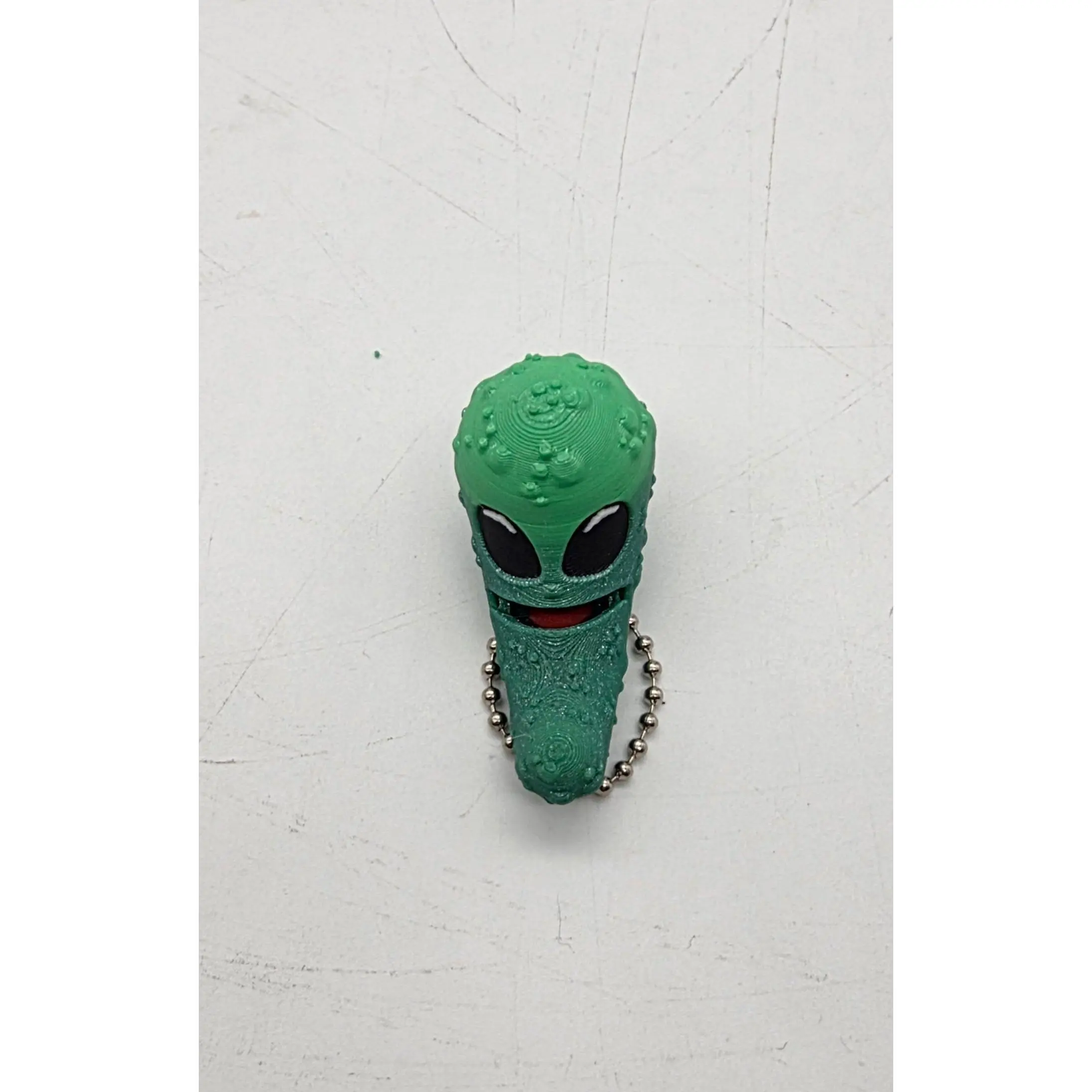 This here's the Alien pickle. Fully articulated fidget keychain, complete with oversized dome head and the kind of eyes that have seen things you wouldn't believe.