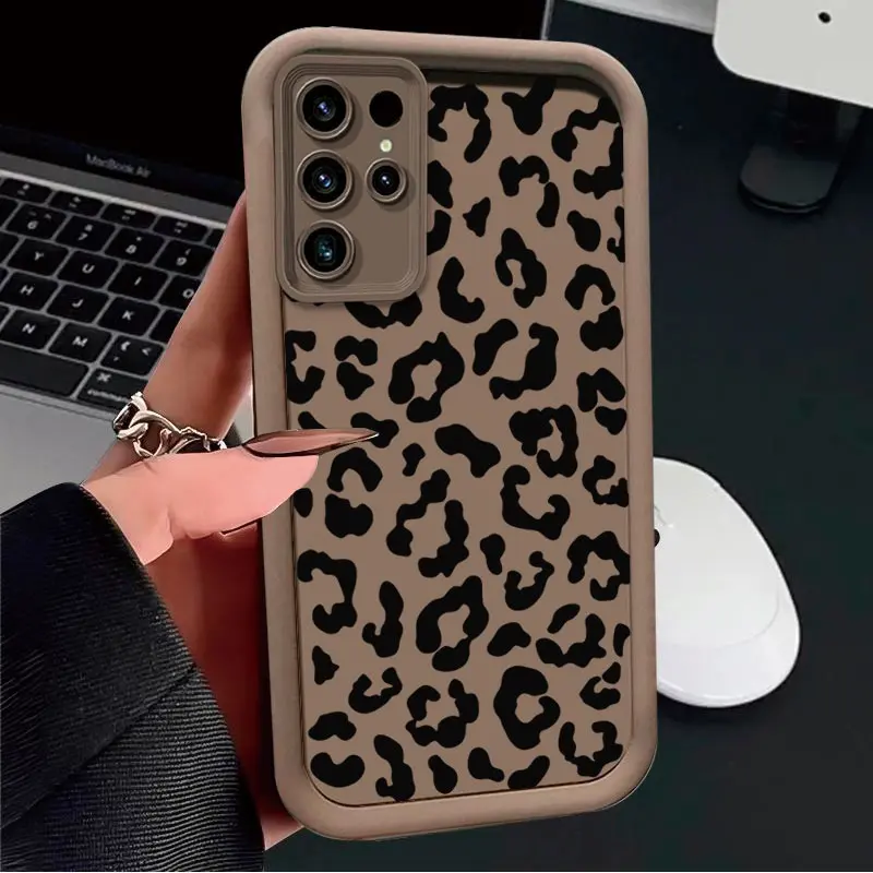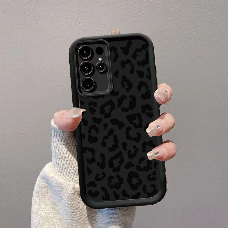 A Full-Screen Black Leopard Print Shockproof And Anti-Drop Protective Phone Case Suitable for Samsung A03S, A04, A12, A13, A15, A21S, A24, A25, A32, A33, A34, A35, A50, A51, A52, A53, A54, A55, A71, S20/FE, S21/FE/PLUS/ULTRA, S22/PLUS/ULTRA, S23, S24 S25