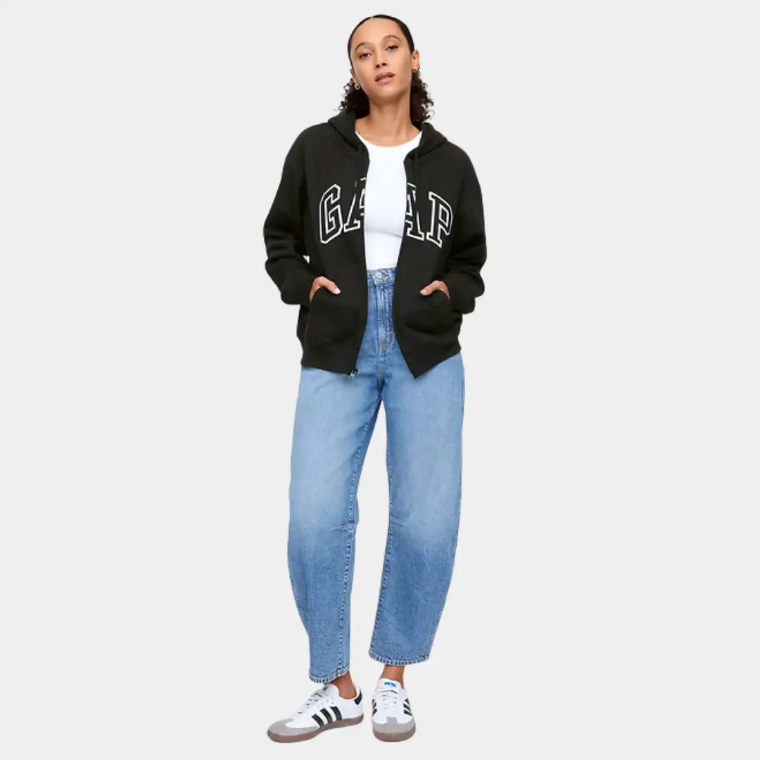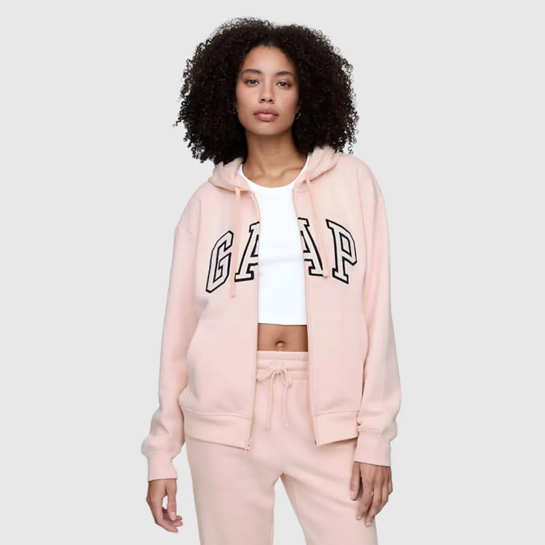 GAP Women Relaxed Logo Zip Hoodie - Comfortable Fleece, Everyday Wear, Soft & Cozy, Perfect for Casual Outfits