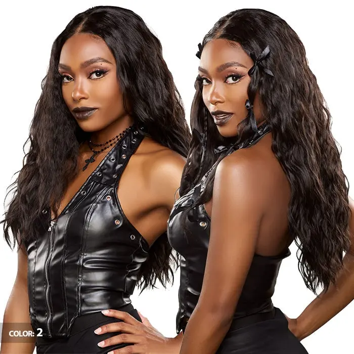 SHOWN COLOR: 2 BRAND: Sensationnel TYPE: Lace Front Wig STYLE: Wavy MATERIAL: Synthetic Hair LENGTH: 24"