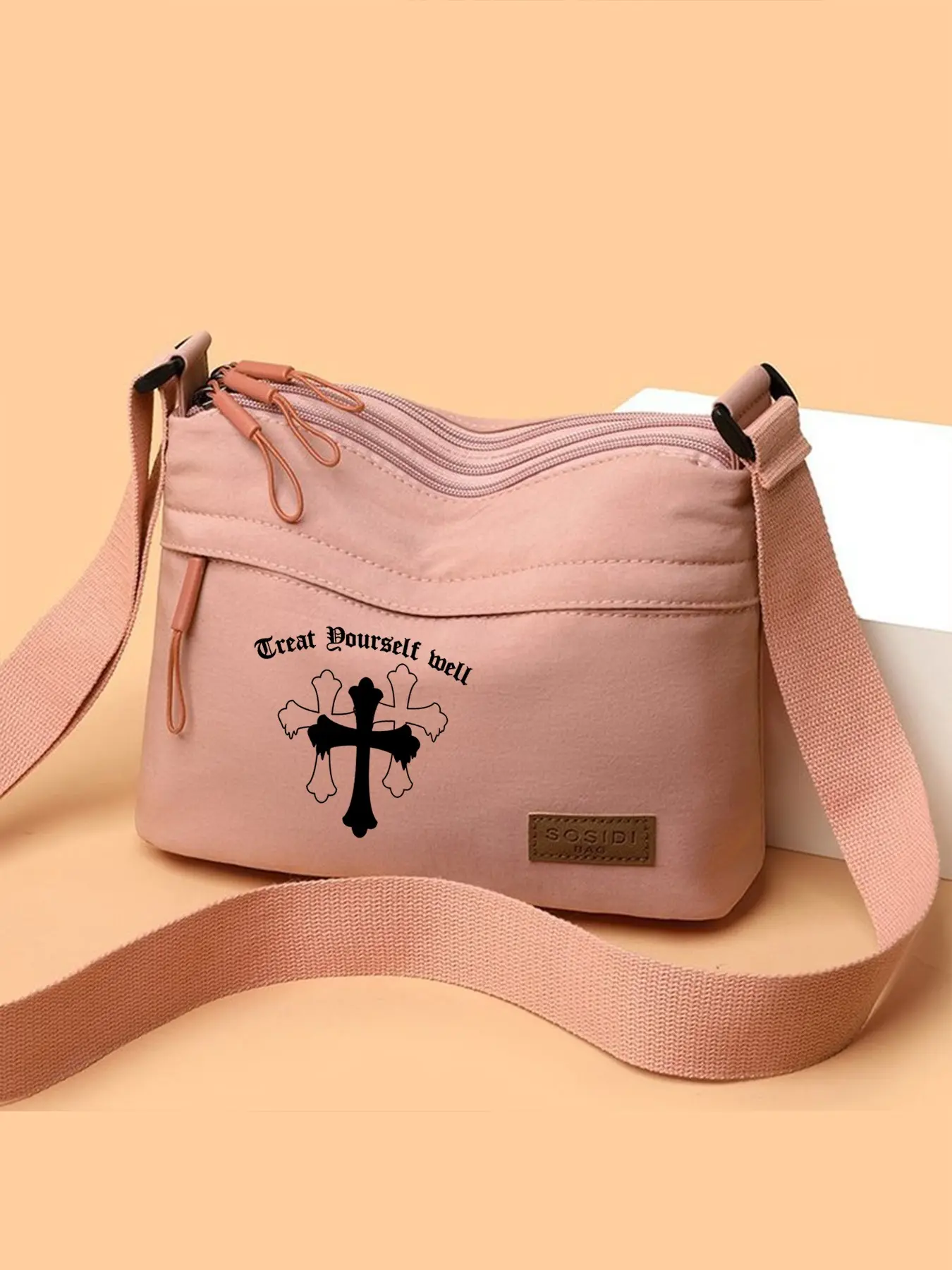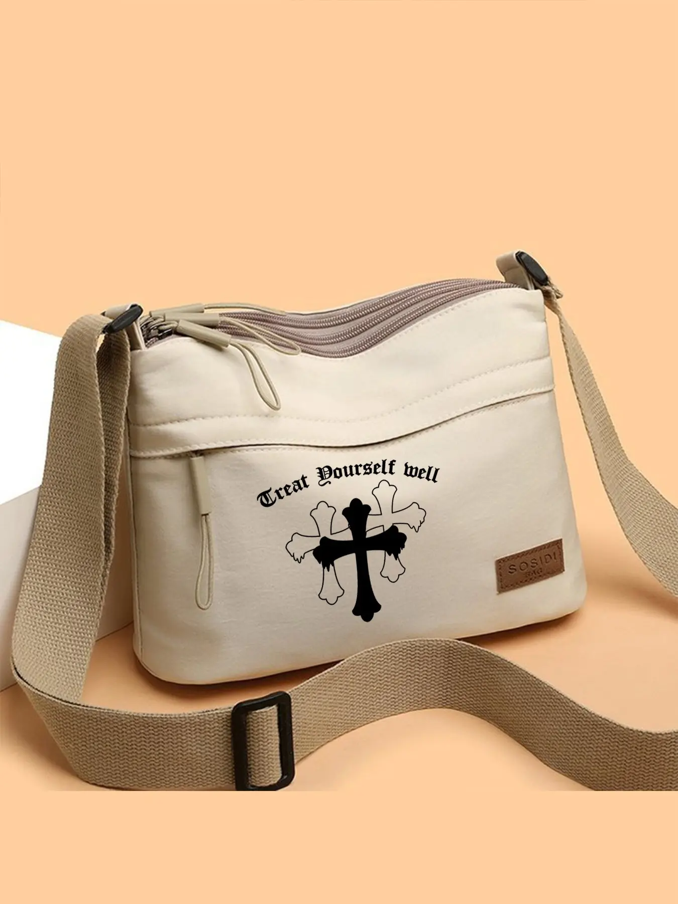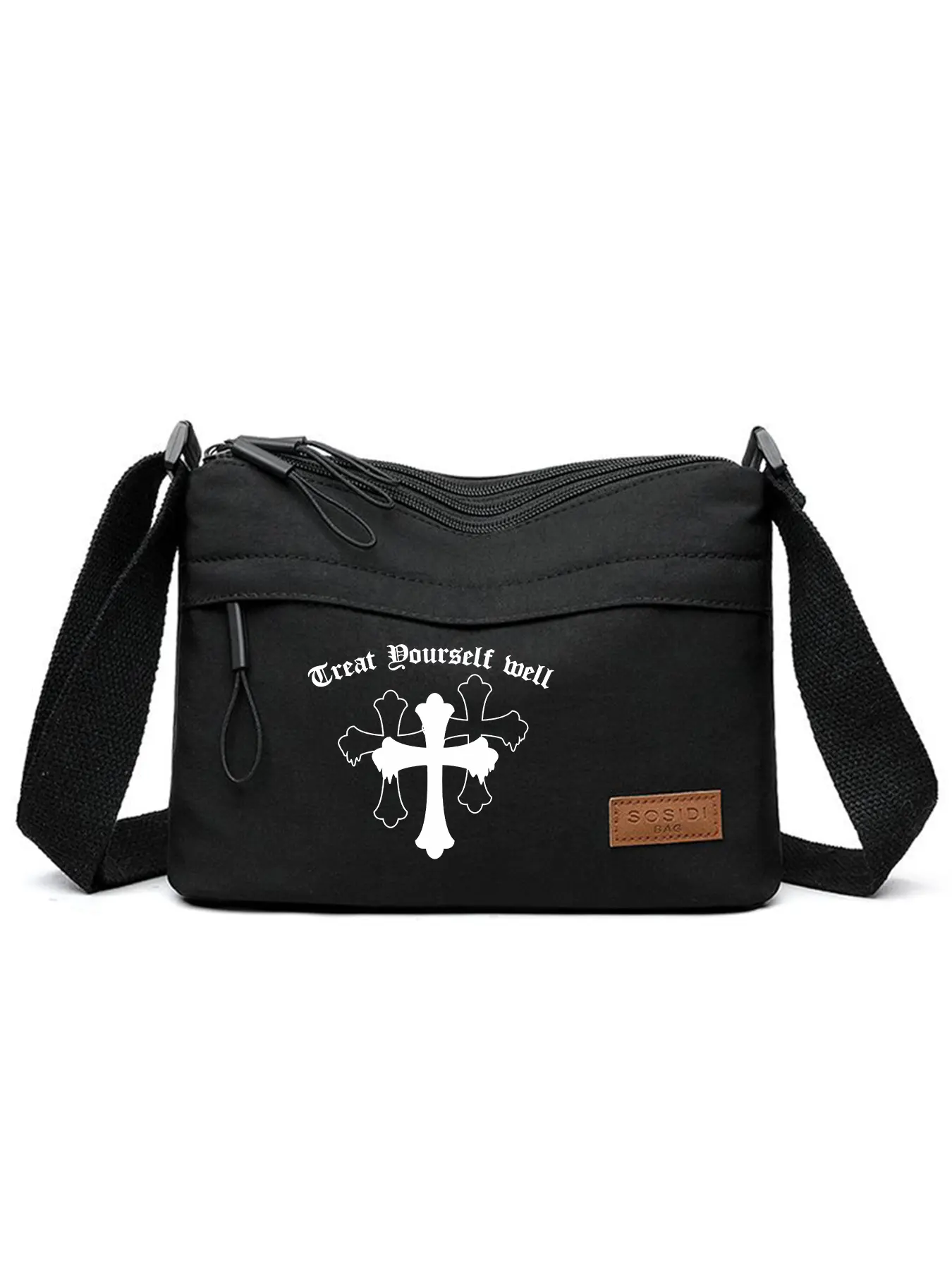 Crossbody Bag with Cross Print, Adjustable Strap Shoulder Bag, Unisex Casual Style, Ideal for Outdoor Leisure or Daily Commute