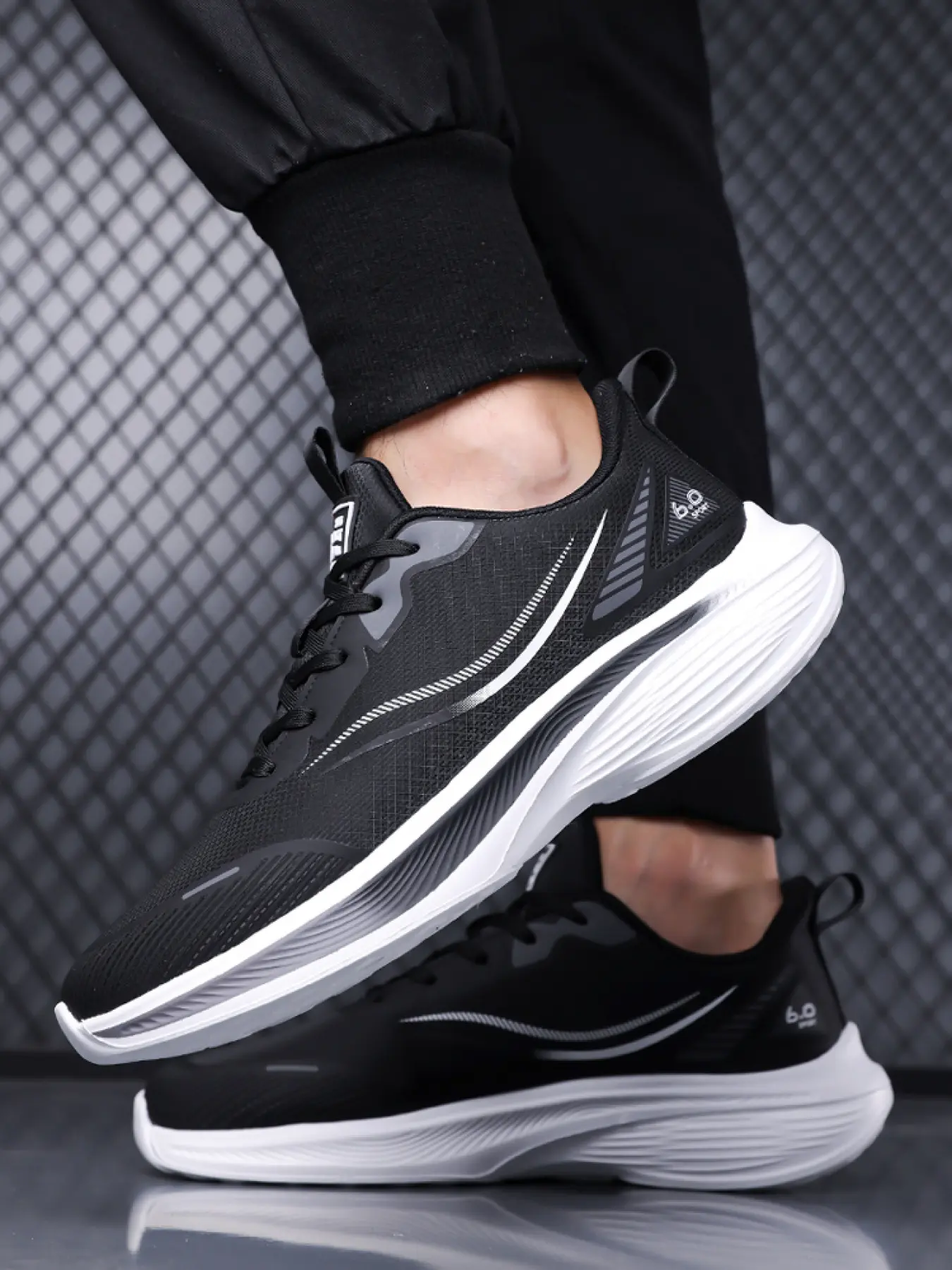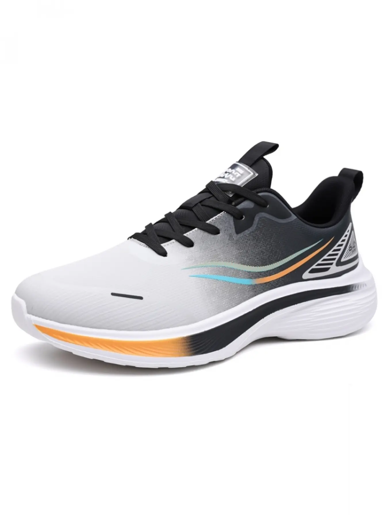 Men's Black-White Streamline Sneakers: Cushioned Platform Design, Professional Running & Training Shoes