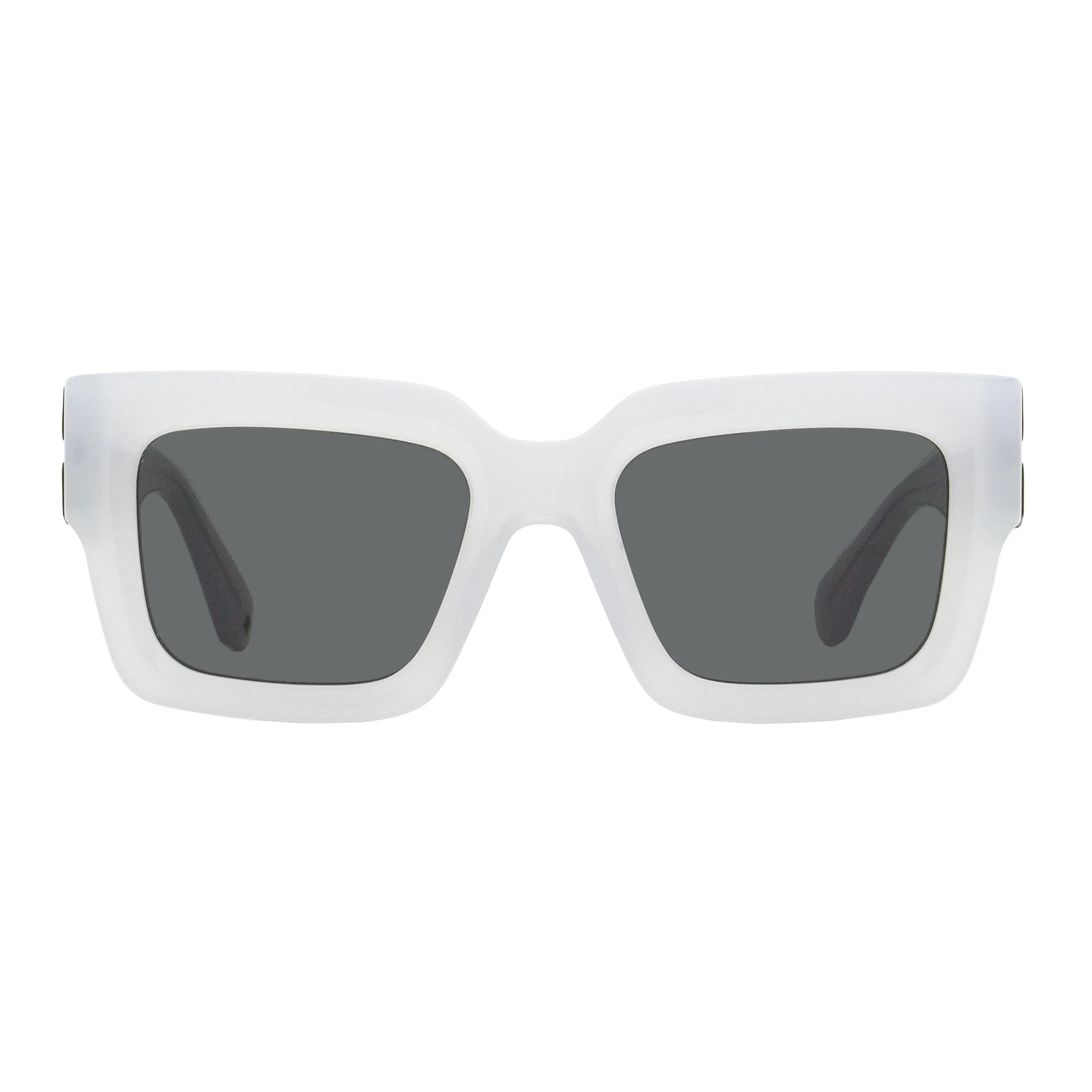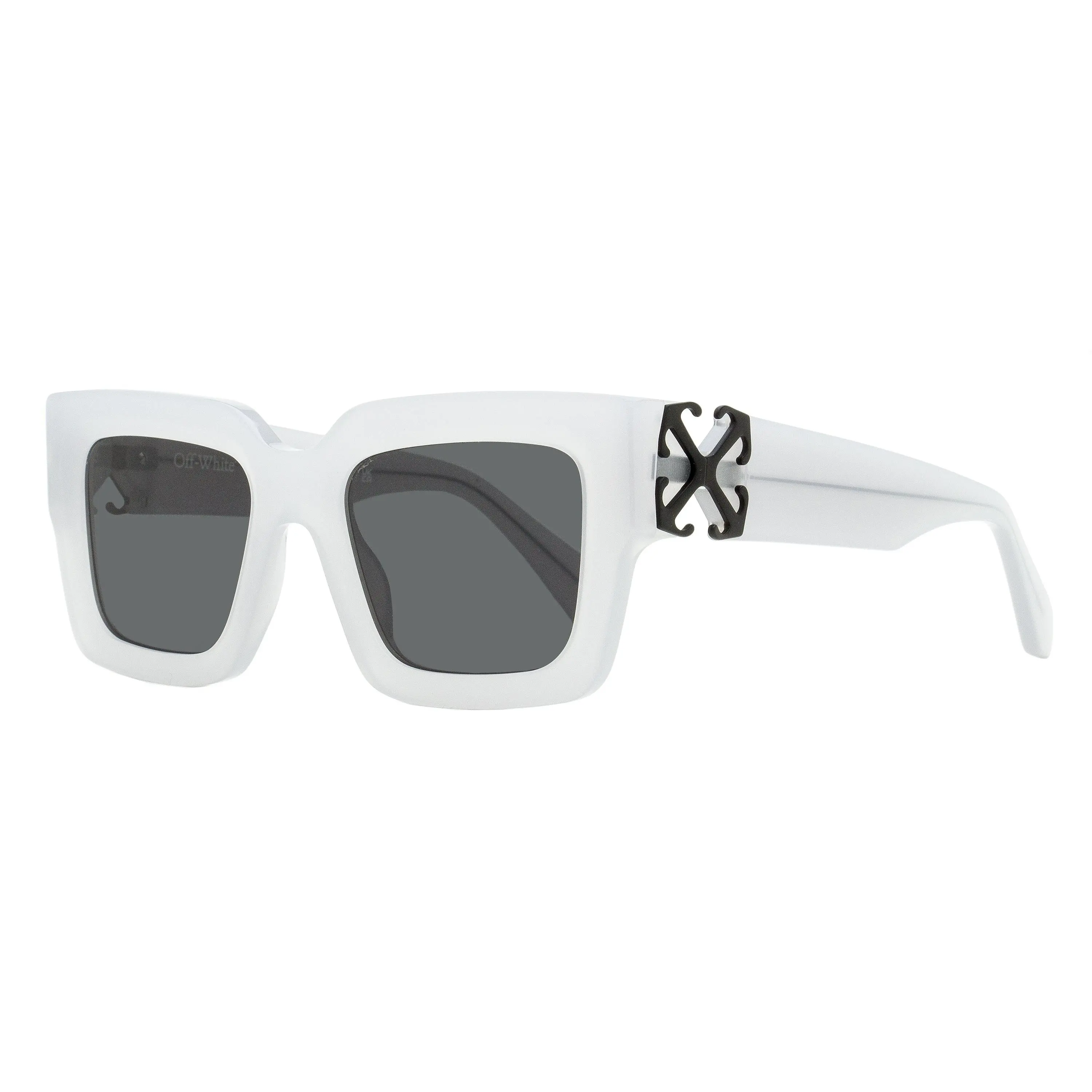 The Off-White Mystic sunglasses feature a oversize square frame shape with elongated, flattened sides for women. The acetate frame is accented with large metal arrow logos on both temples. Off-White eyewear blends the brand’s signature streetwear aesthetic with bold, architectural frame designs. The collection emphasizes contemporary style and premium craftsmanship across both sunglasses and optical frames. Providing 100% UV protection from the sun’s harmful rays, these sunglasses are as functional as they are fashionable.
