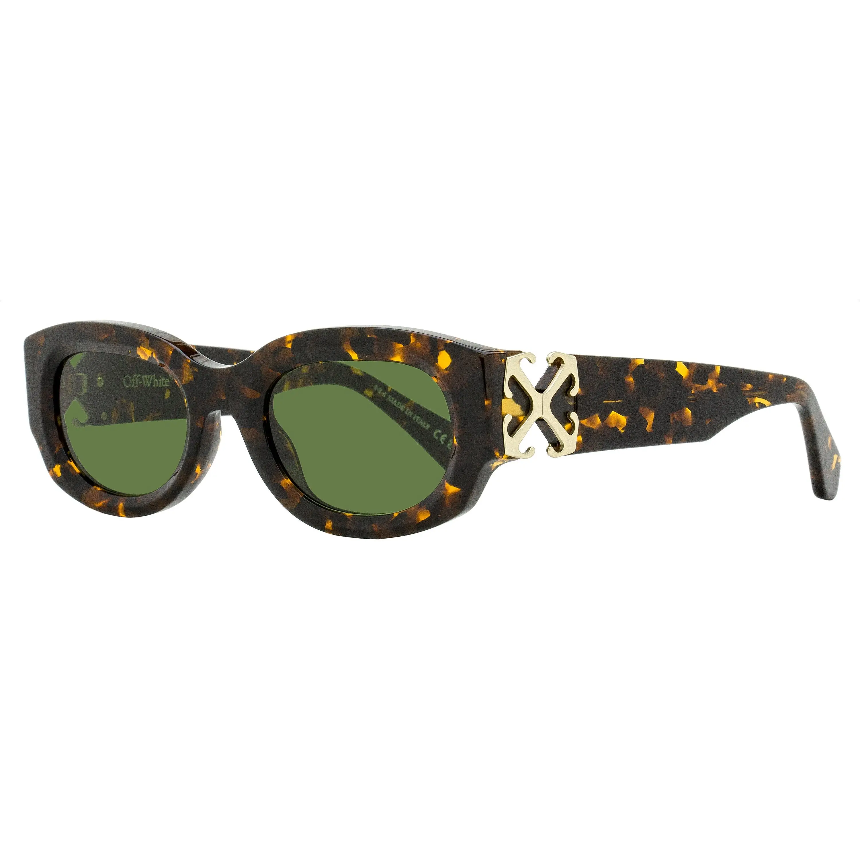 The Off-White Palmer sunglasses feature an oval silhouette with sculpted profiles, suitable for both men and women. The acetate frame is accented with chamfered interior lens edges and metal arrow logos on both temples. Off-White eyewear blends the brand’s signature streetwear aesthetic with bold, architectural frame designs, emphasizing contemporary style and premium craftsmanship across both sunglasses and optical frames. Providing 100% UV protection from the sun’s harmful rays, these sunglasses are as functional as they are fashionable.