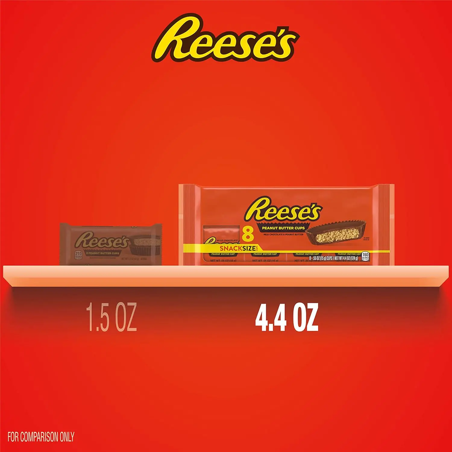 Discover the classic combo of creamy milk chocolate and delicious peanut butter. REESE'S milk chocolate peanut butter cups are your go-to snack. Perfect for sporting events, movie marathons, or game nights. Store them in your pantry for anytime snacking or pack them in lunch boxes for a midday surprise. Each pack contains 8 count, 0.55 oz.
